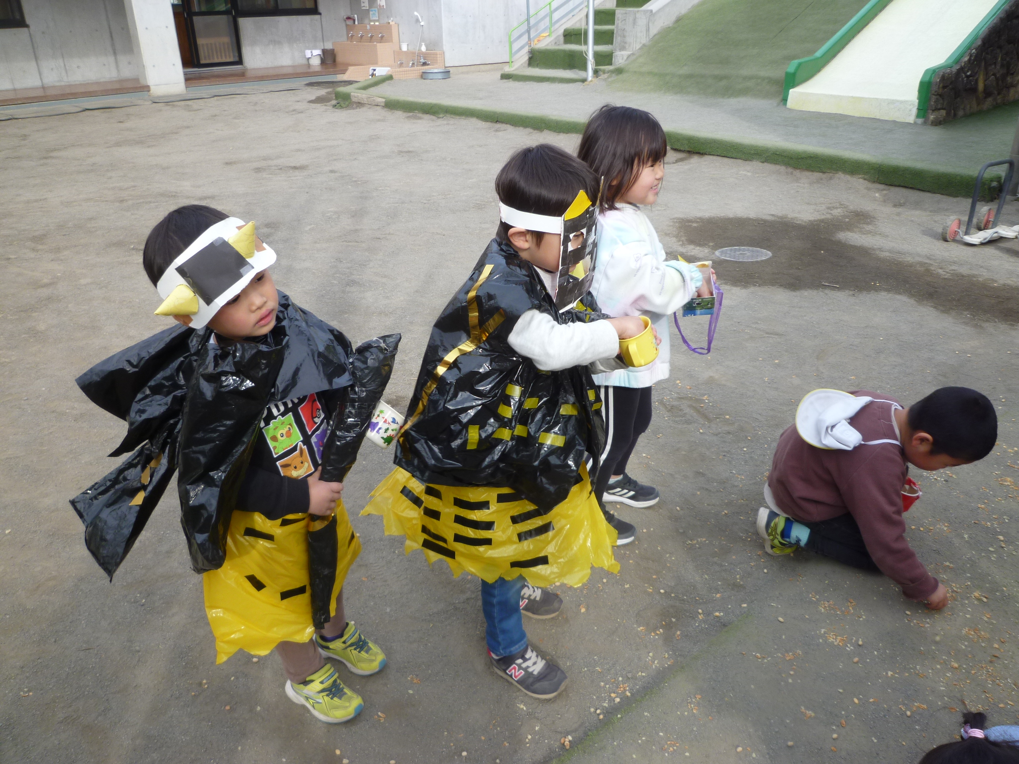 ひなどり組では、何日も前からアイテムを作りそれを身につけて