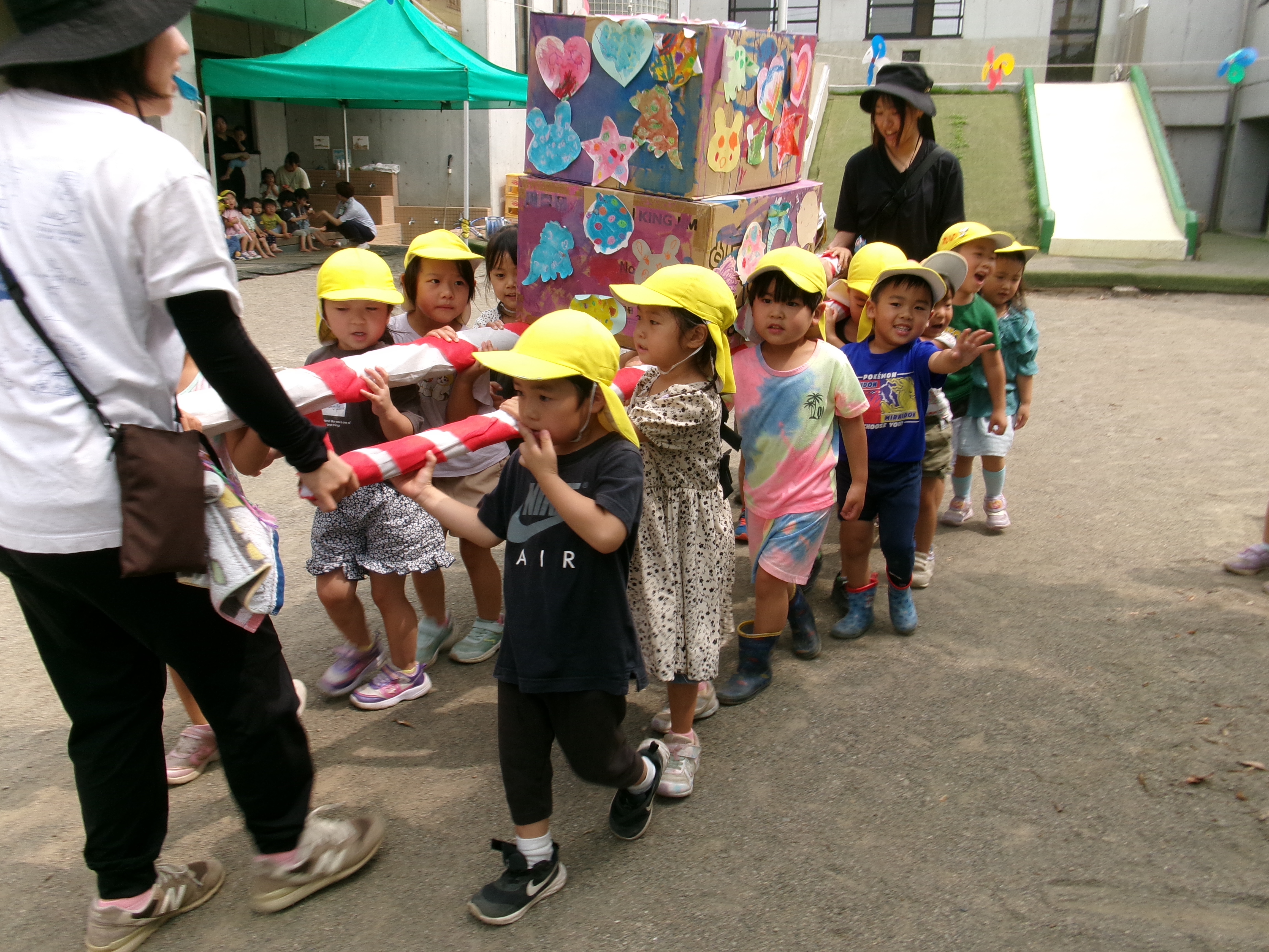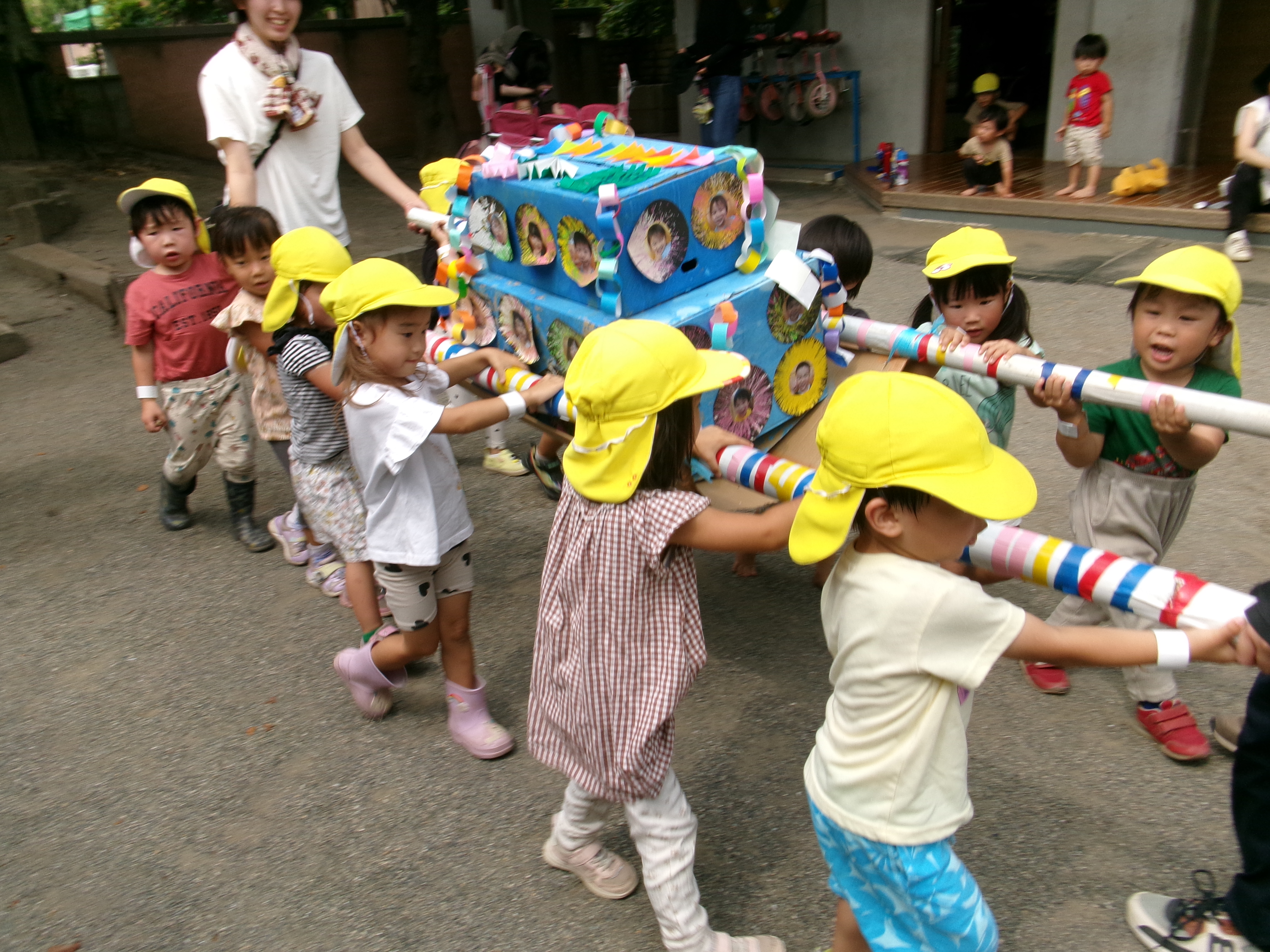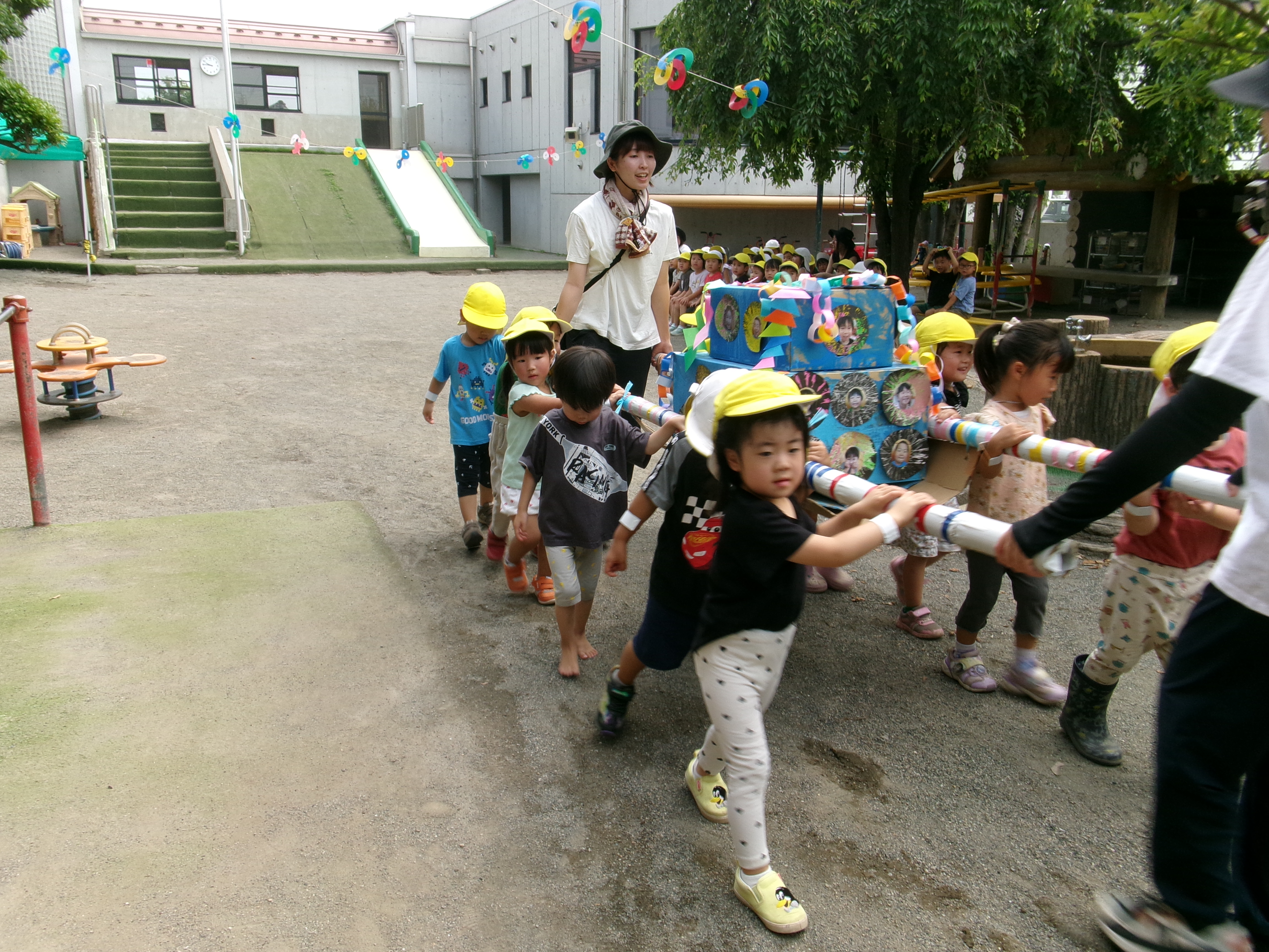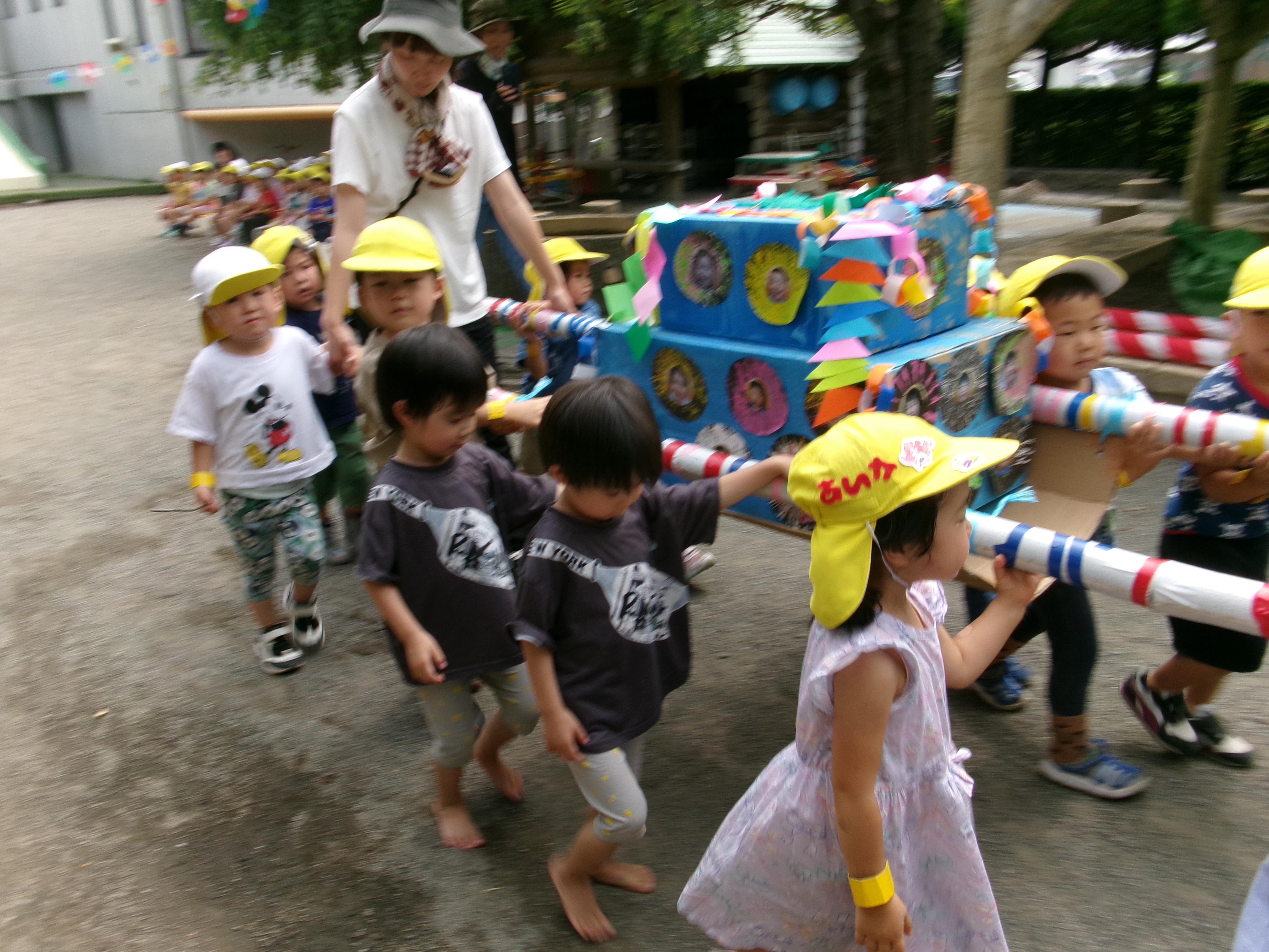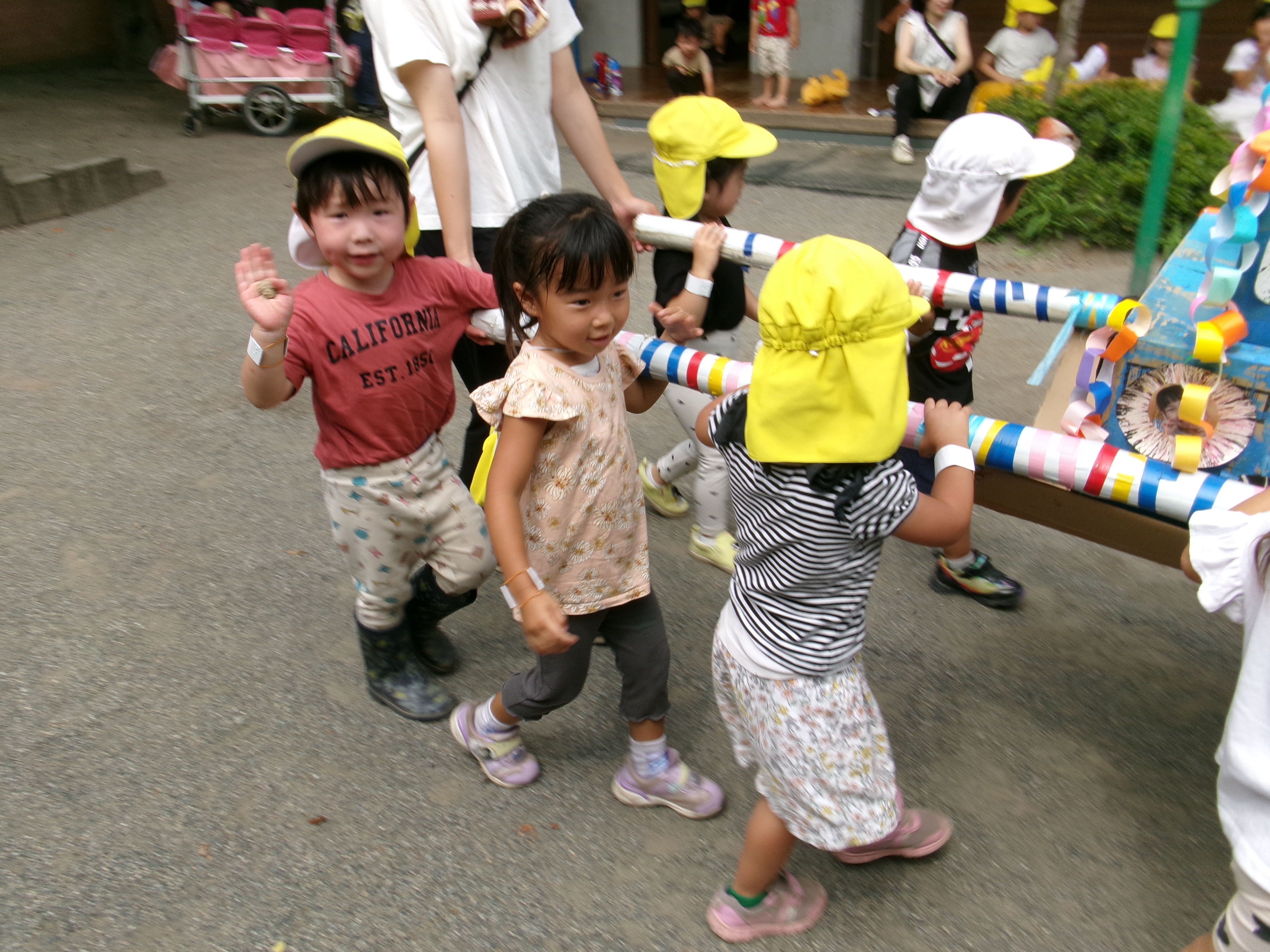 ひよこ、ひなどり組のお神輿はみんなで作ったお神輿で、大きな掛け声と共に一生懸命にみんなで担ぎましたよ!