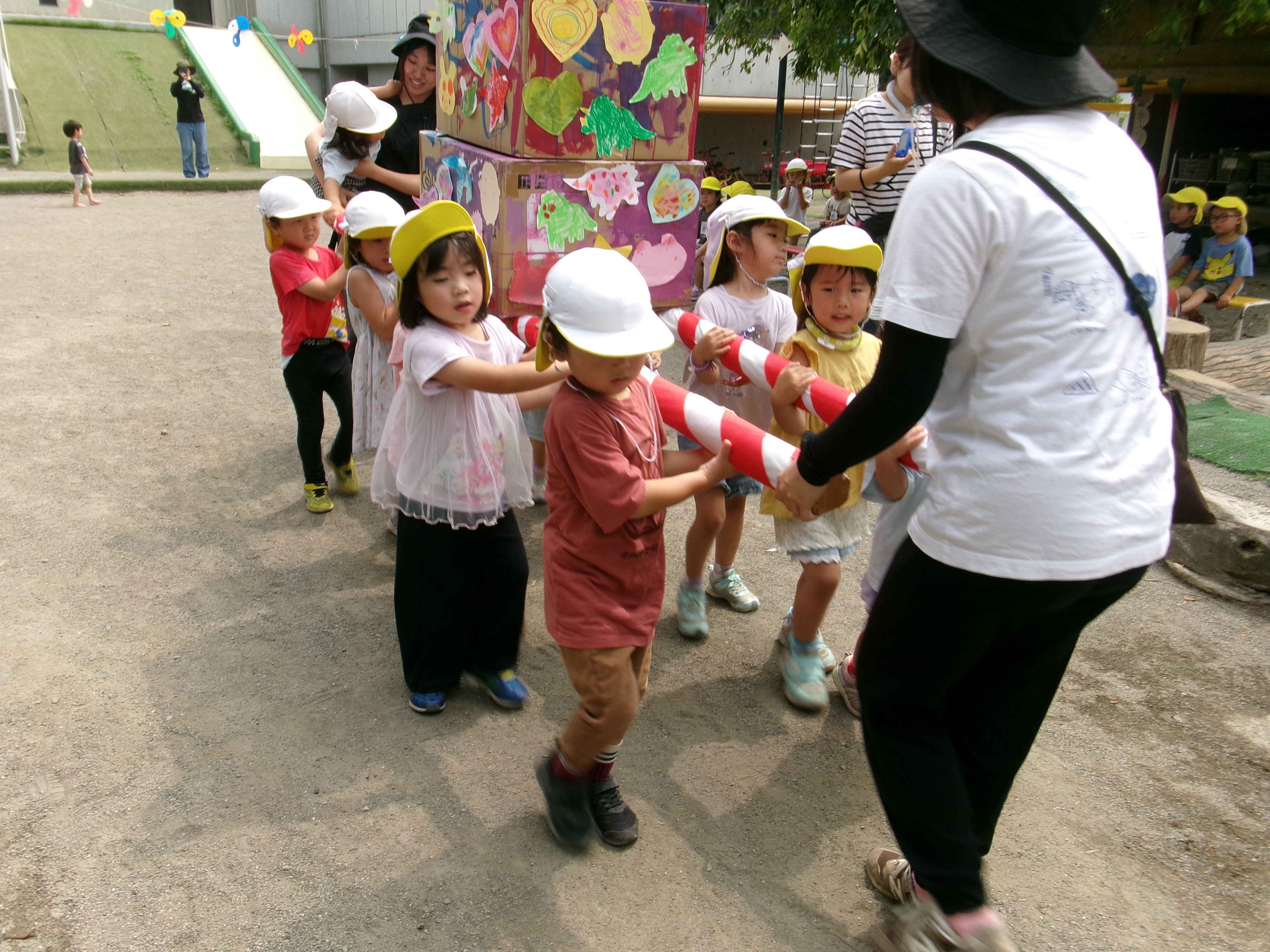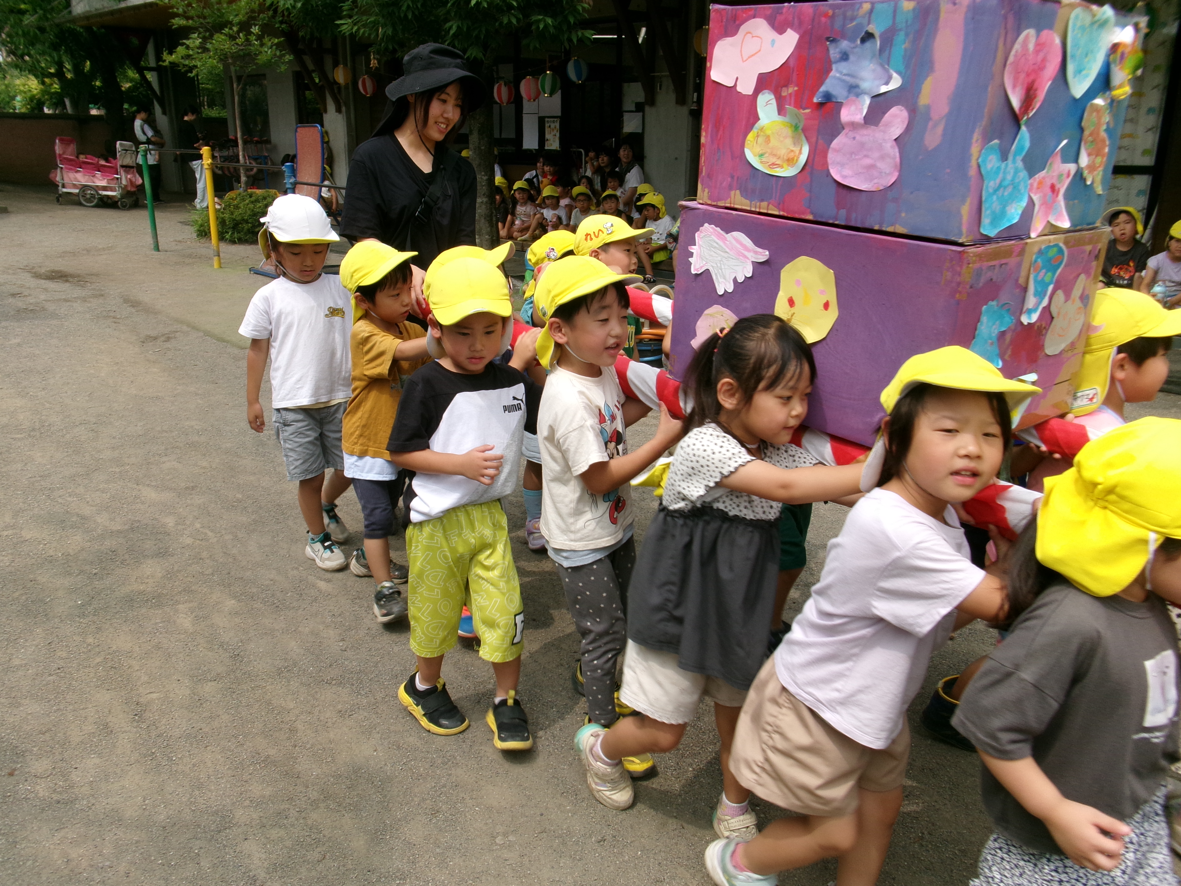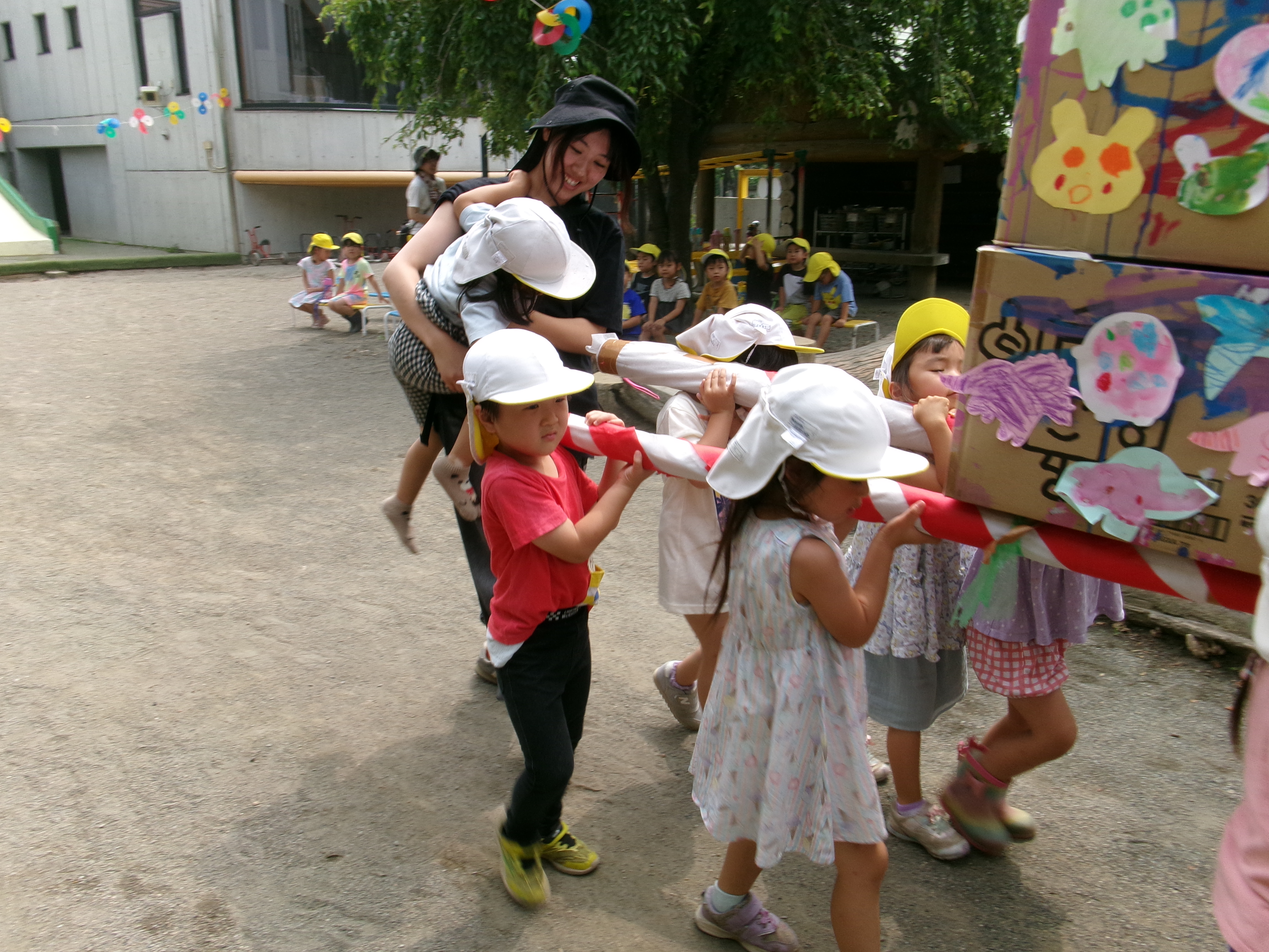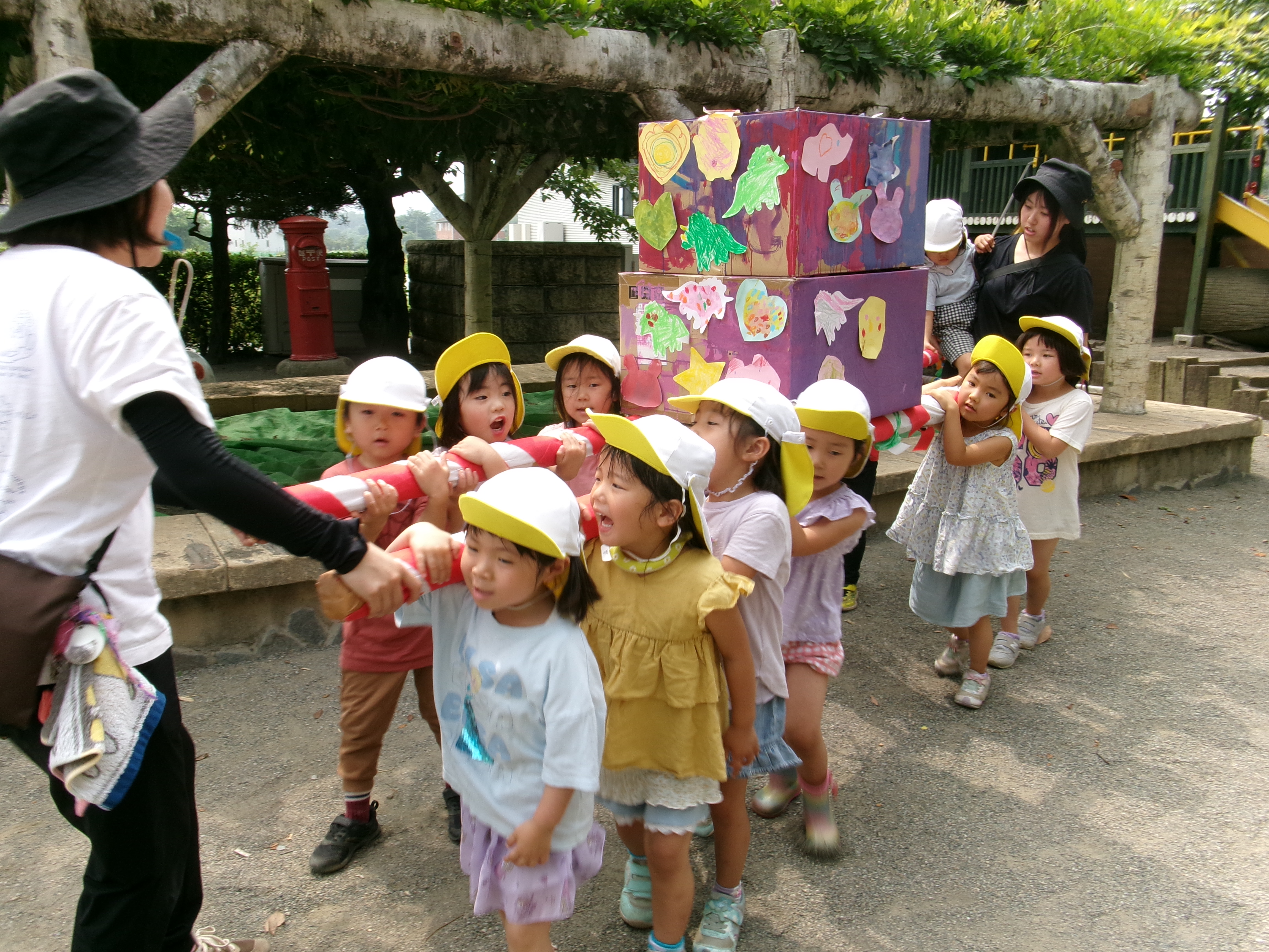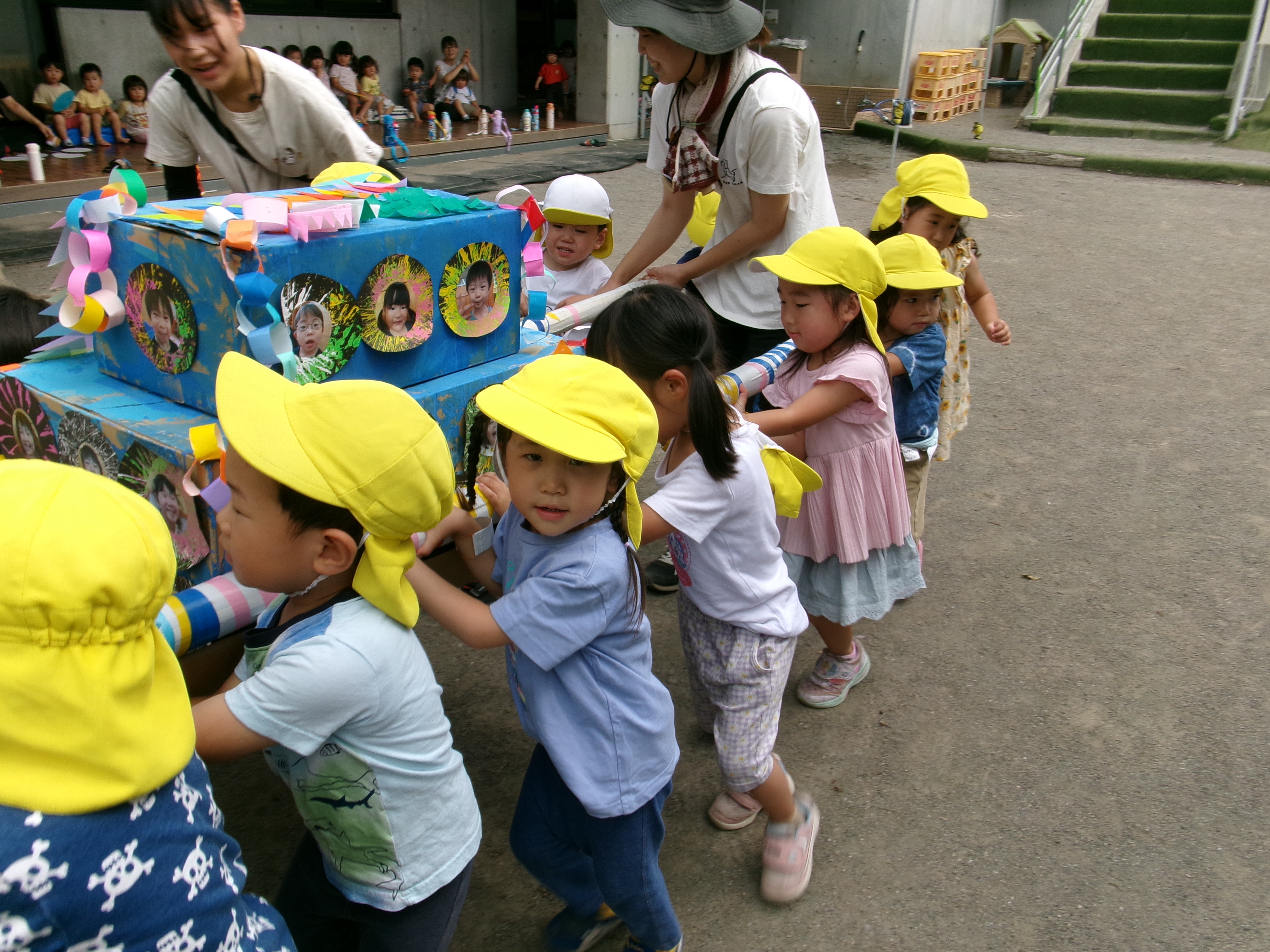 ひよこ、ひなどり組のお神輿はみんなで作ったお神輿で、大きな掛け声と共に一生懸命にみんなで担ぎましたよ!