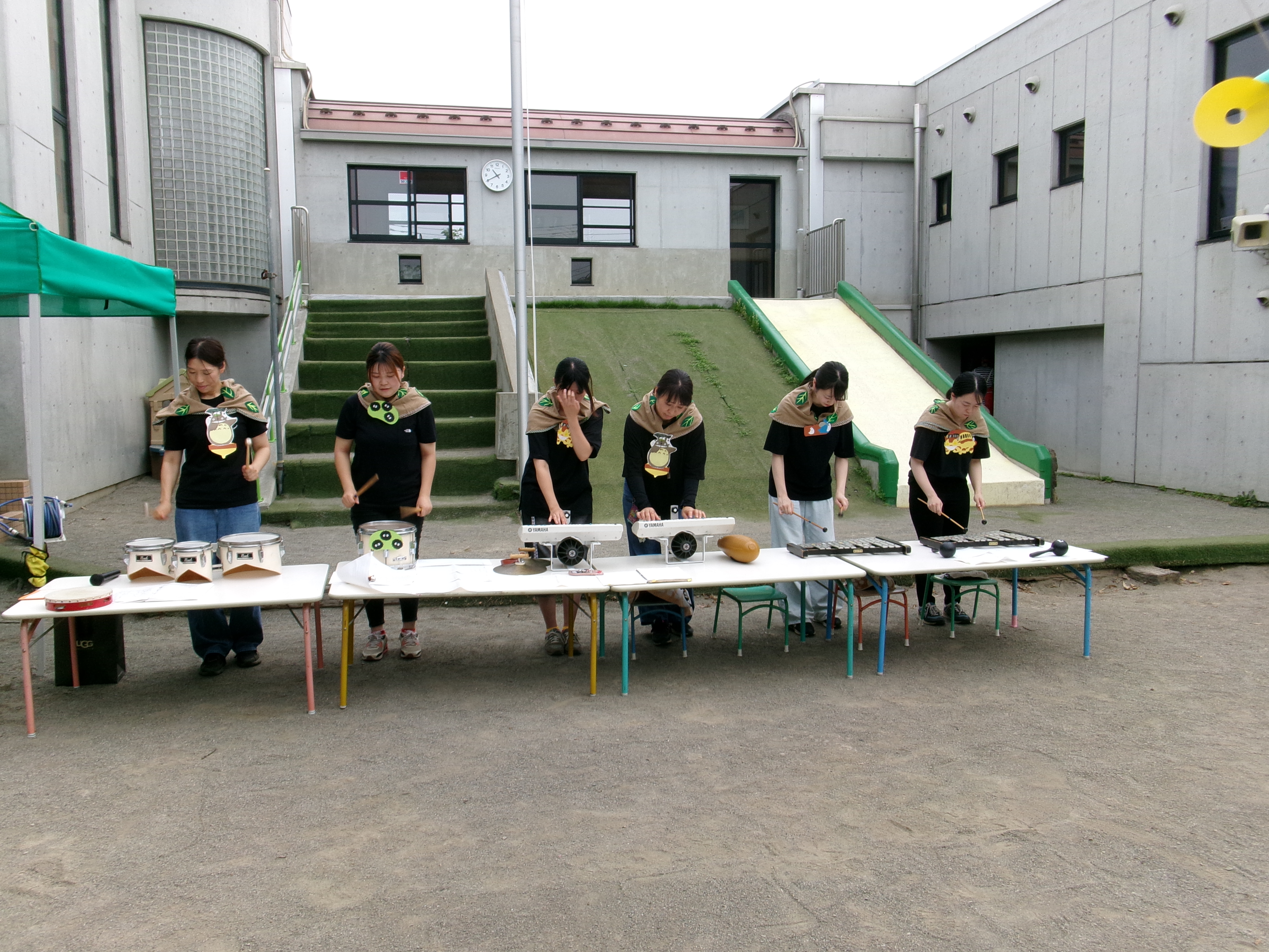 職員による演奏会では、園にはたくさんの色々な楽器があるので、子ども達に楽器を知ってもらいたいという願いから、演奏会を開いてくれました。