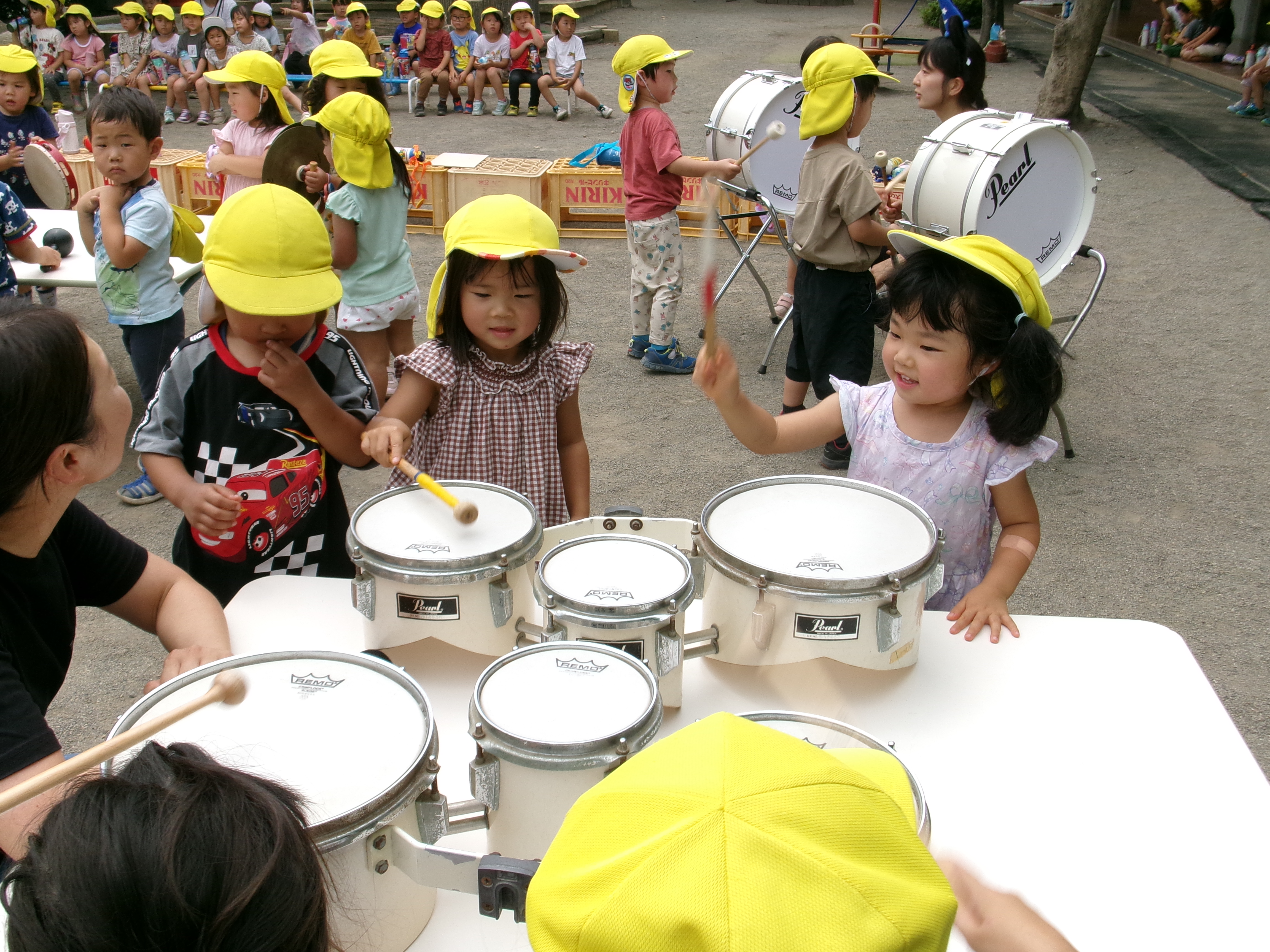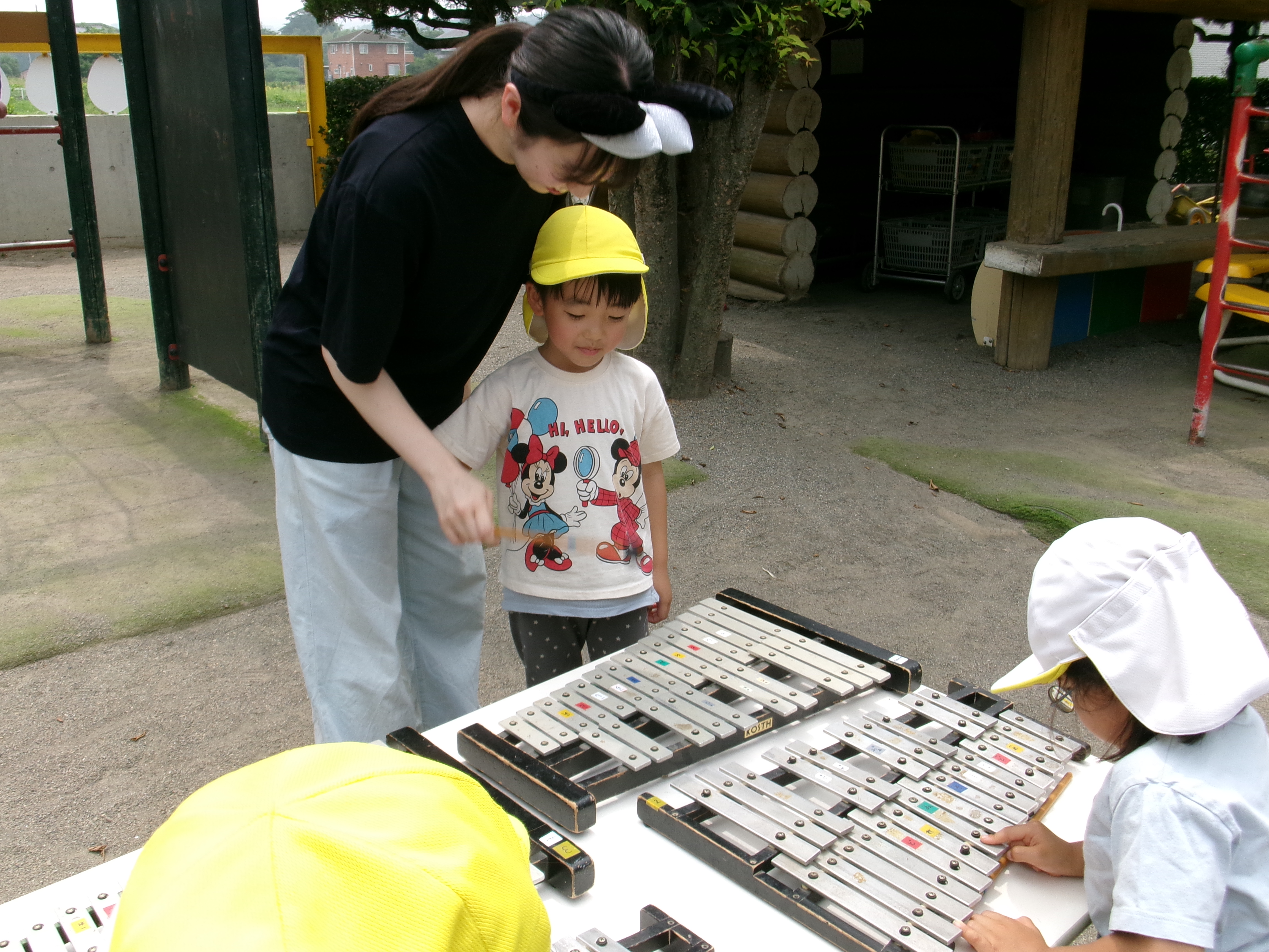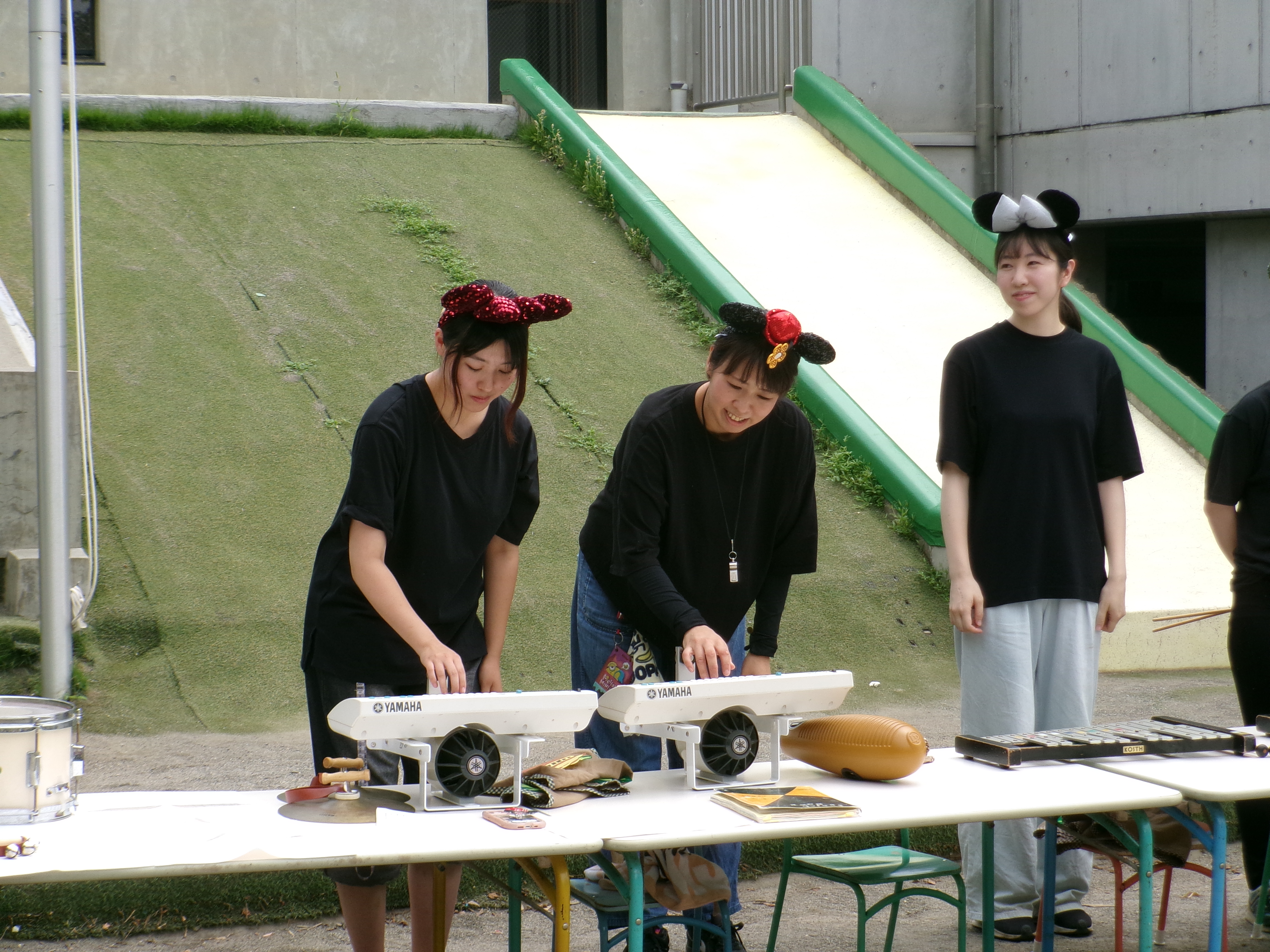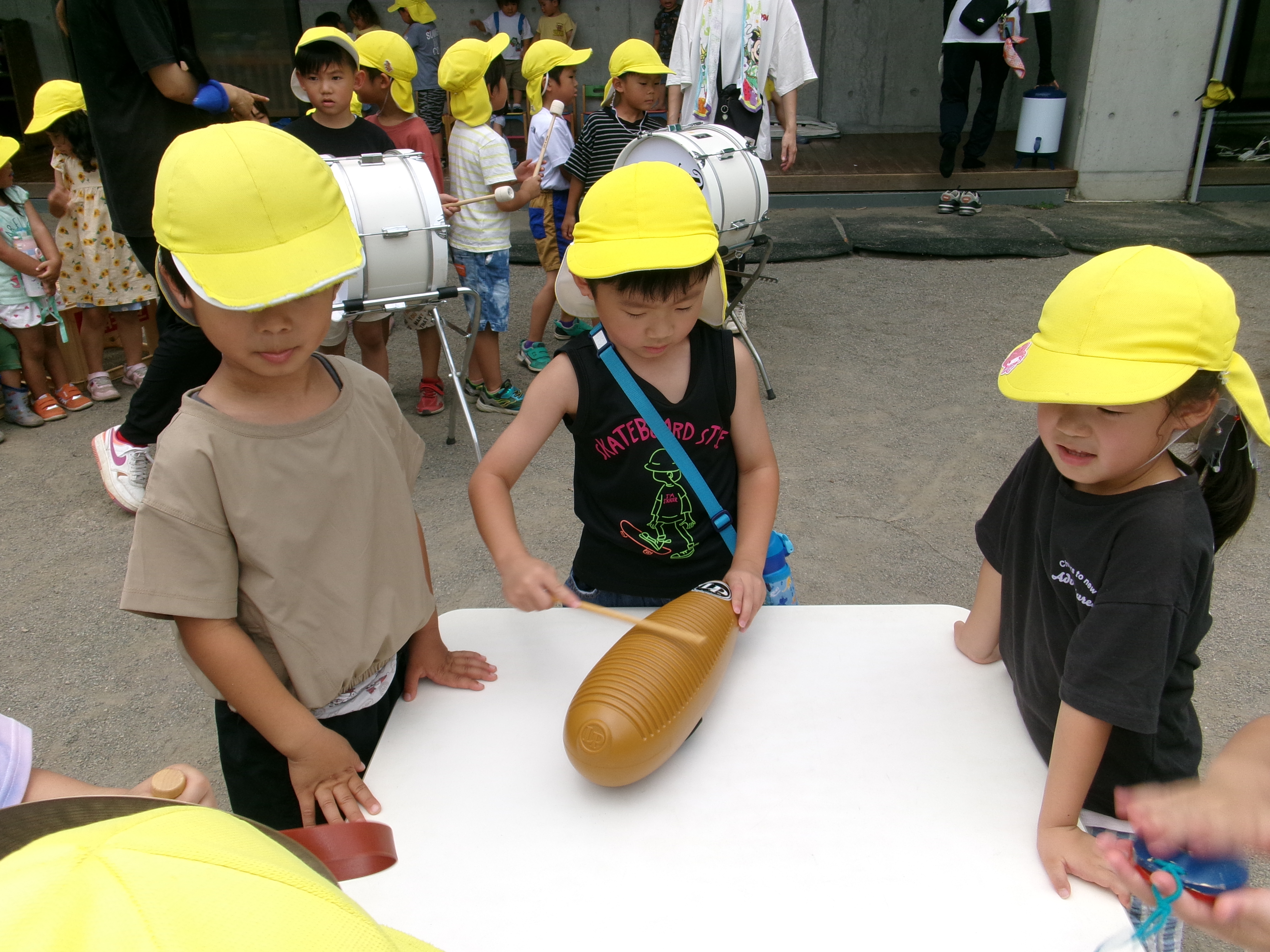 トトロの「さんぽ」と「ミッキーマウスマーチ」の2曲弾いてくれ、その後は実際に子ども達に楽器を触ってもらいました。