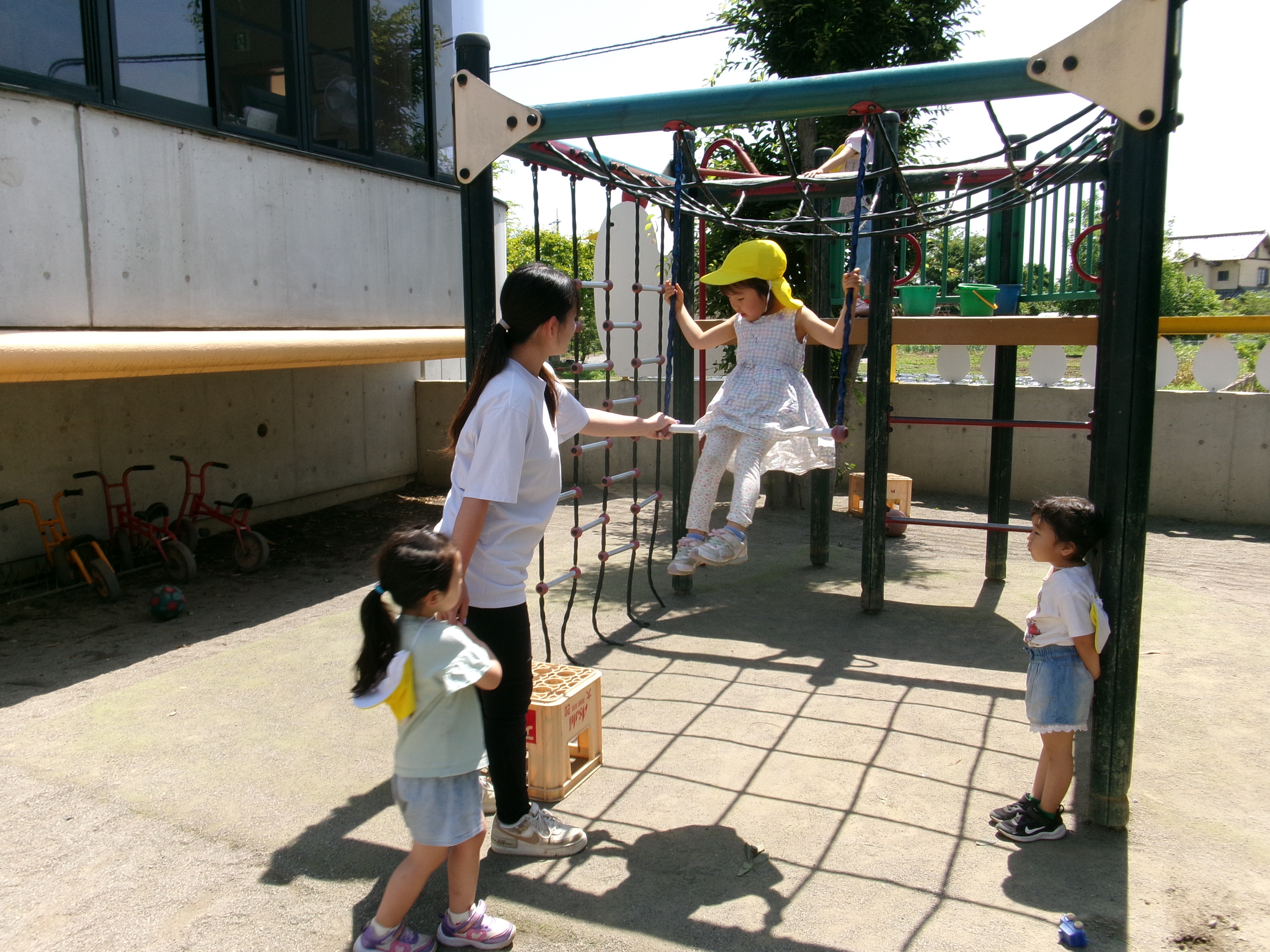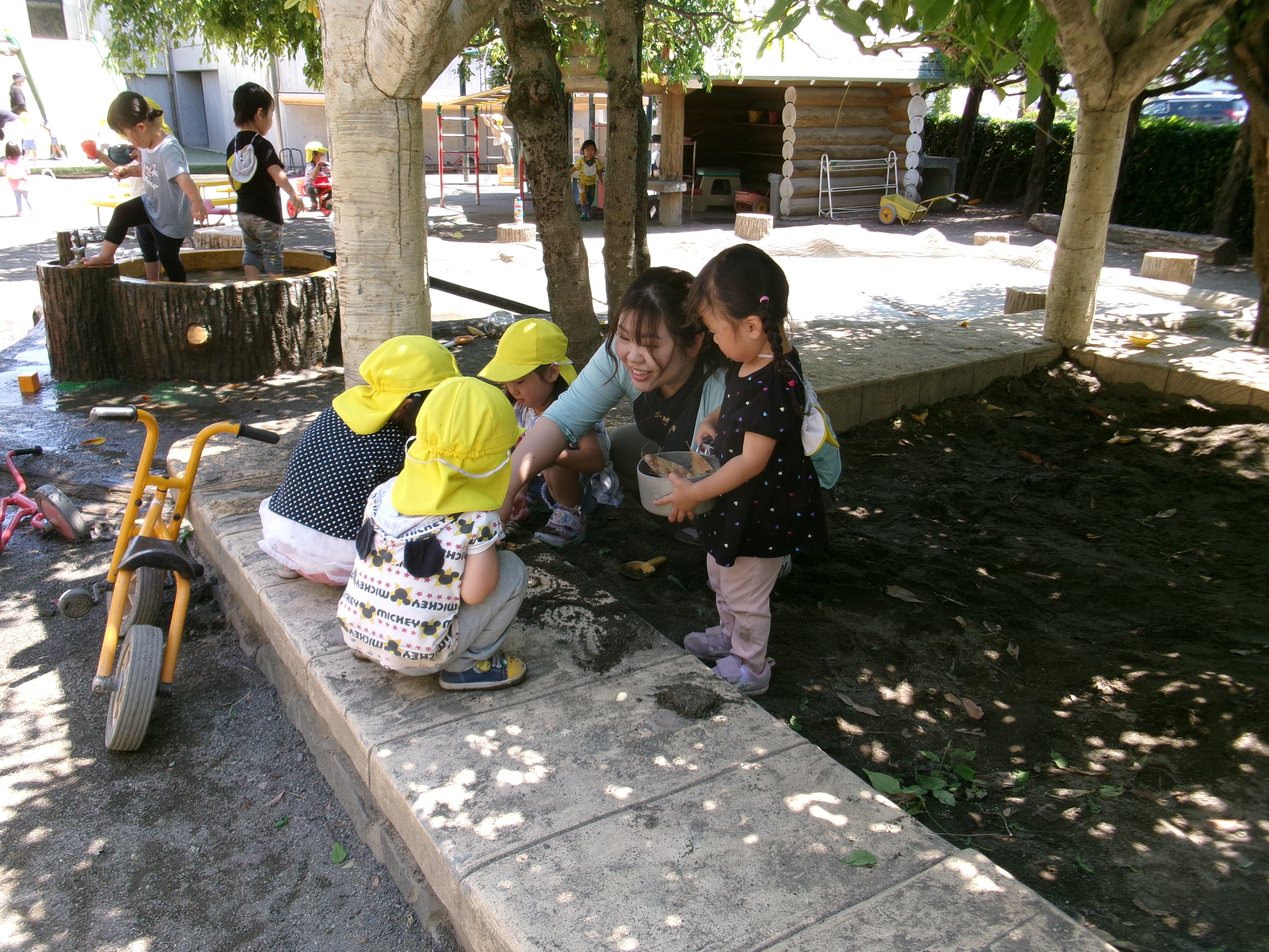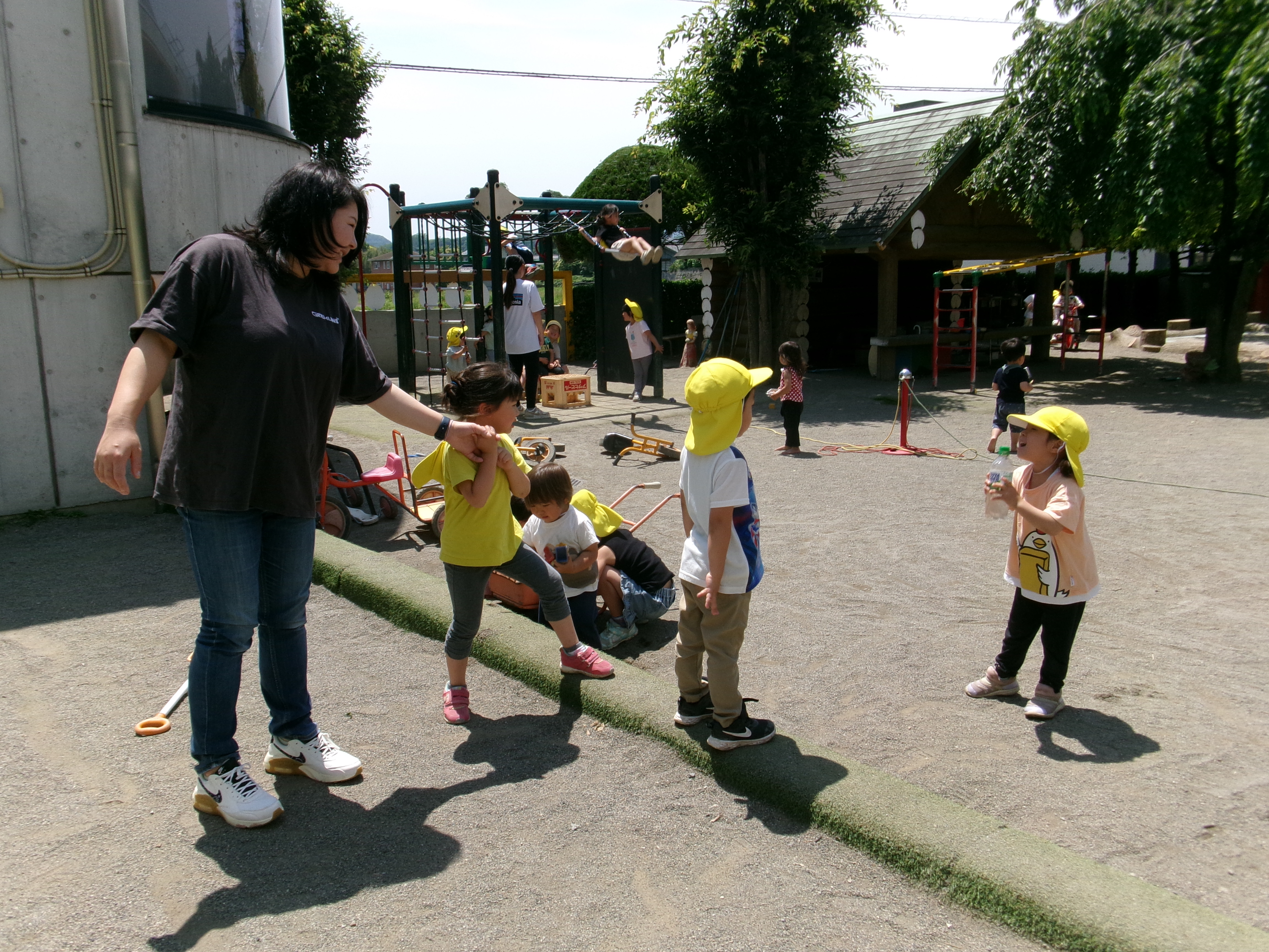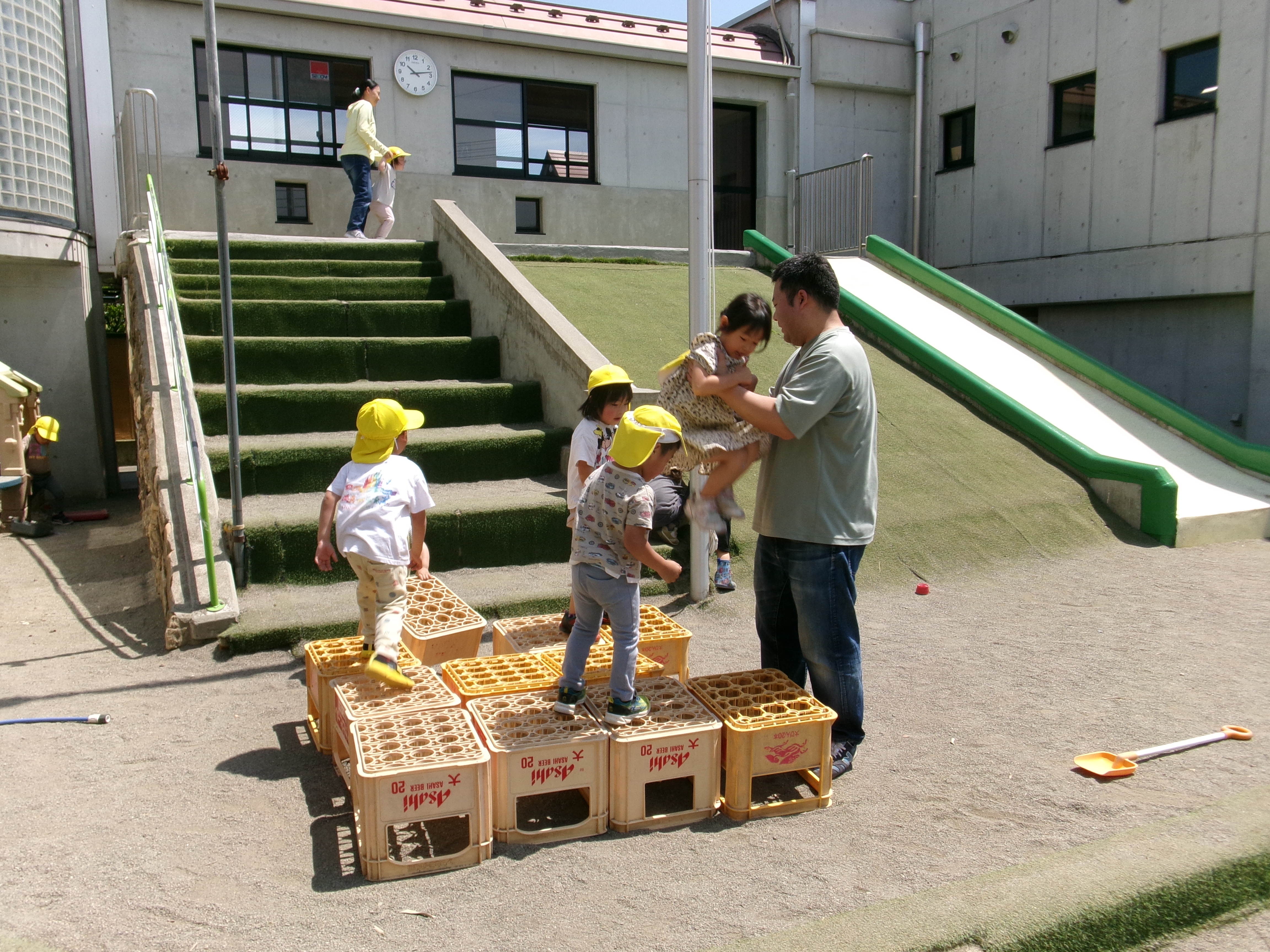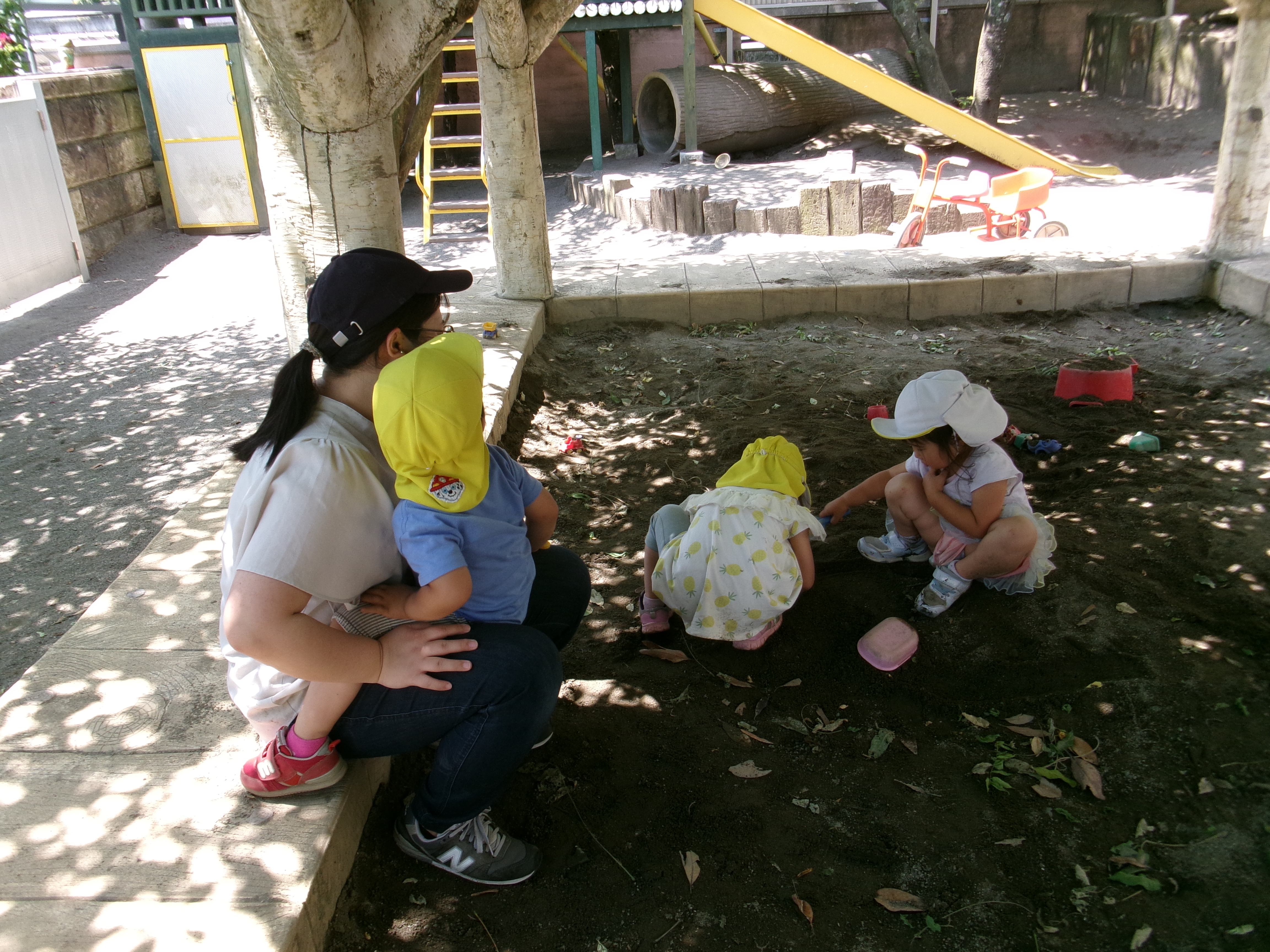 昨日も今日もいい天気になり、外や室内でお父さん、お母さんと一緒に体を動かしたり、虫探しをしてあそびました。