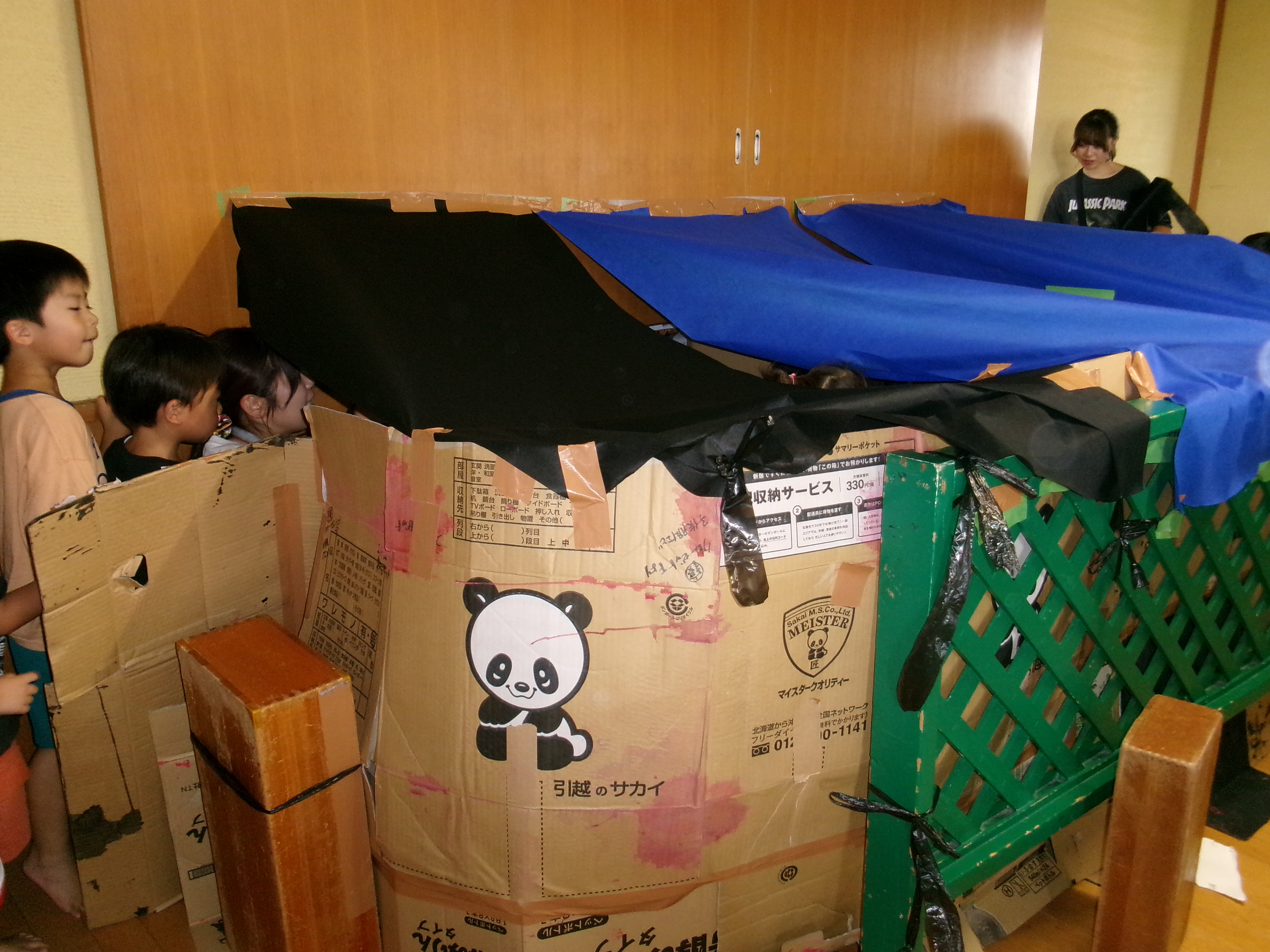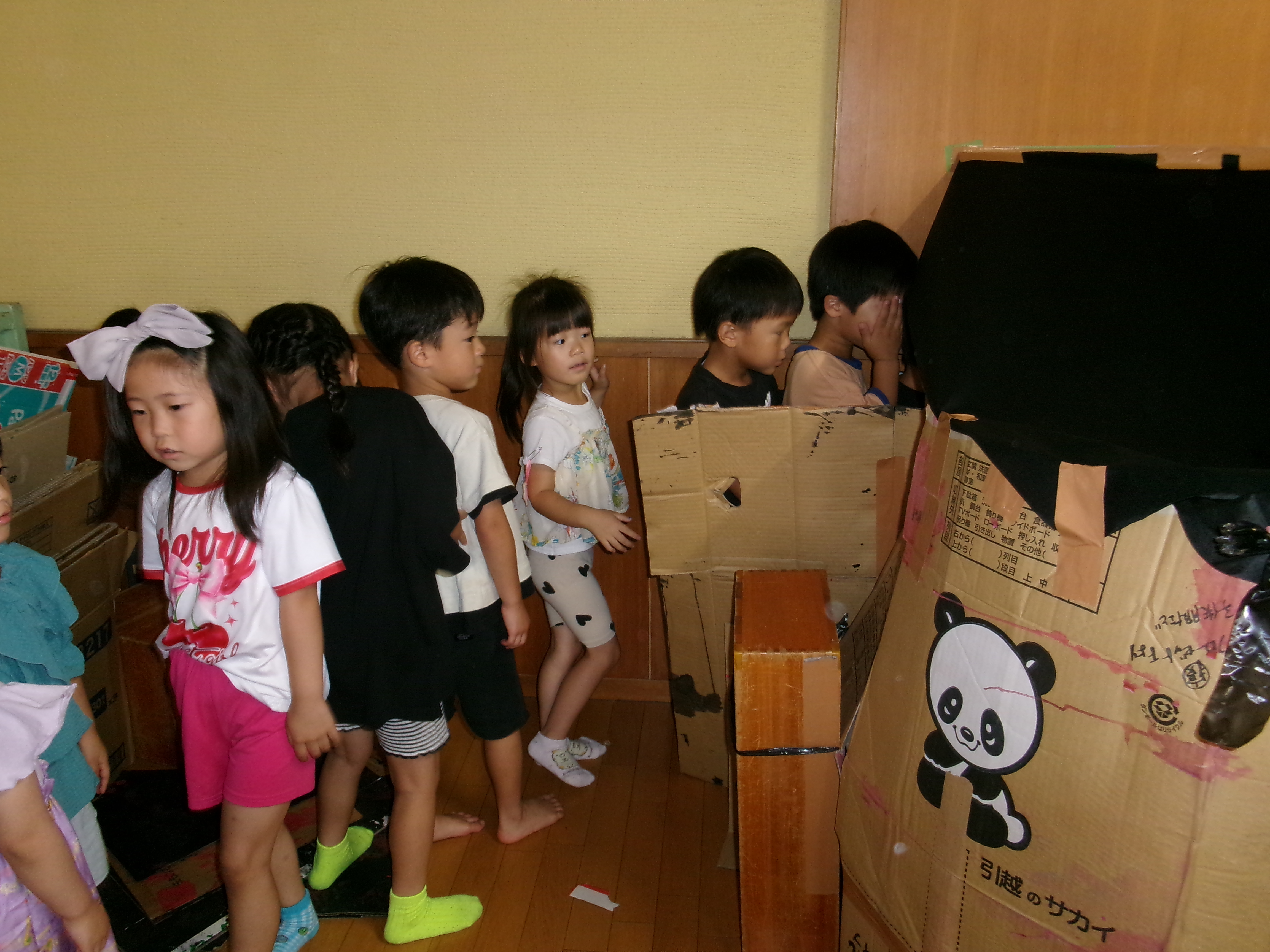 大きな段ボールを家庭から持って登園してきたにわとり組さん。みんなに楽しんでもらいたいという思いが強く、一生懸命完成まで作り上げている姿がありました。