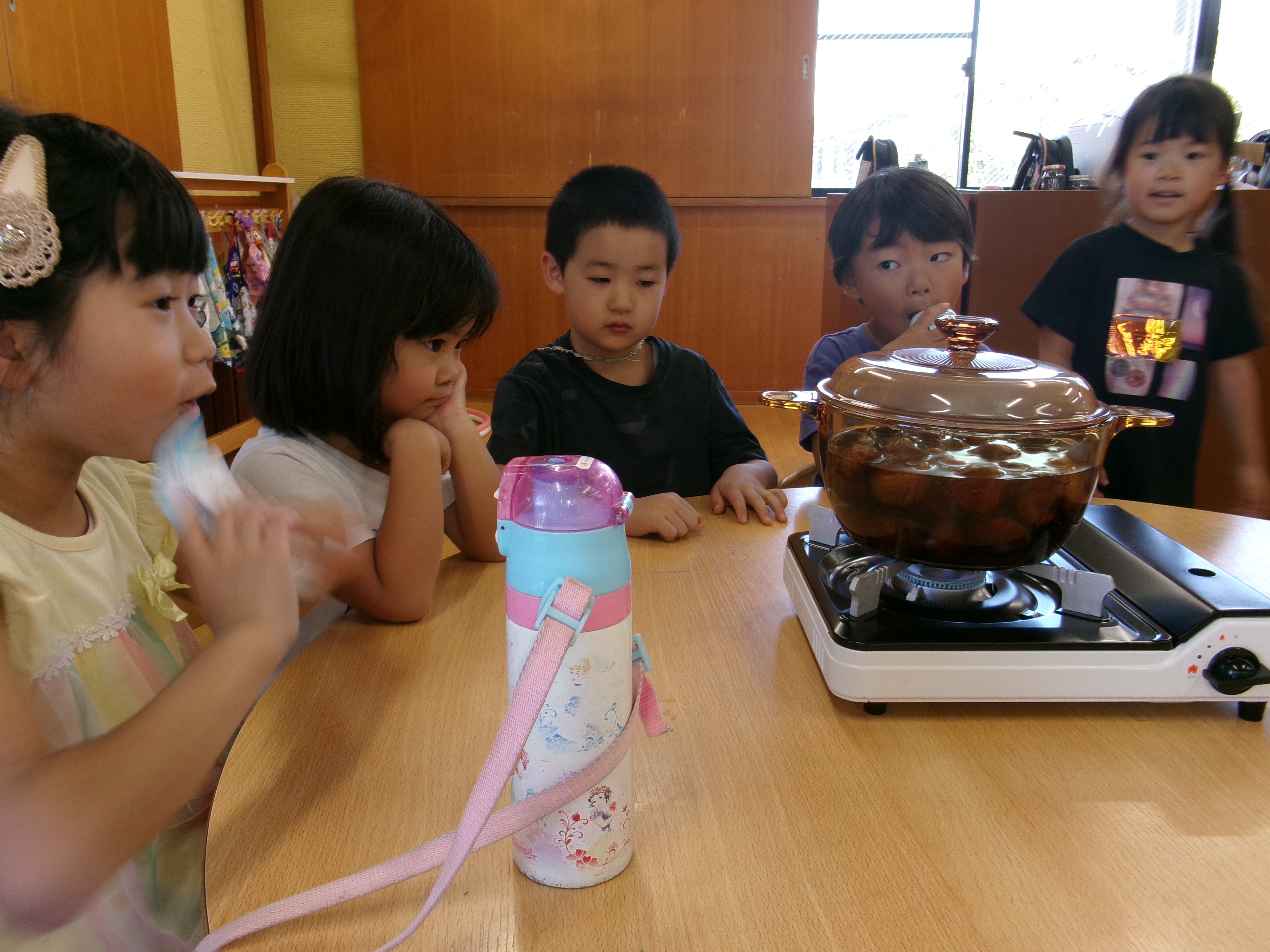 「栗から泡ぶくが出てきた」「お湯が茶色になった」など栗を茹でているだけでたくさんの発見が!
