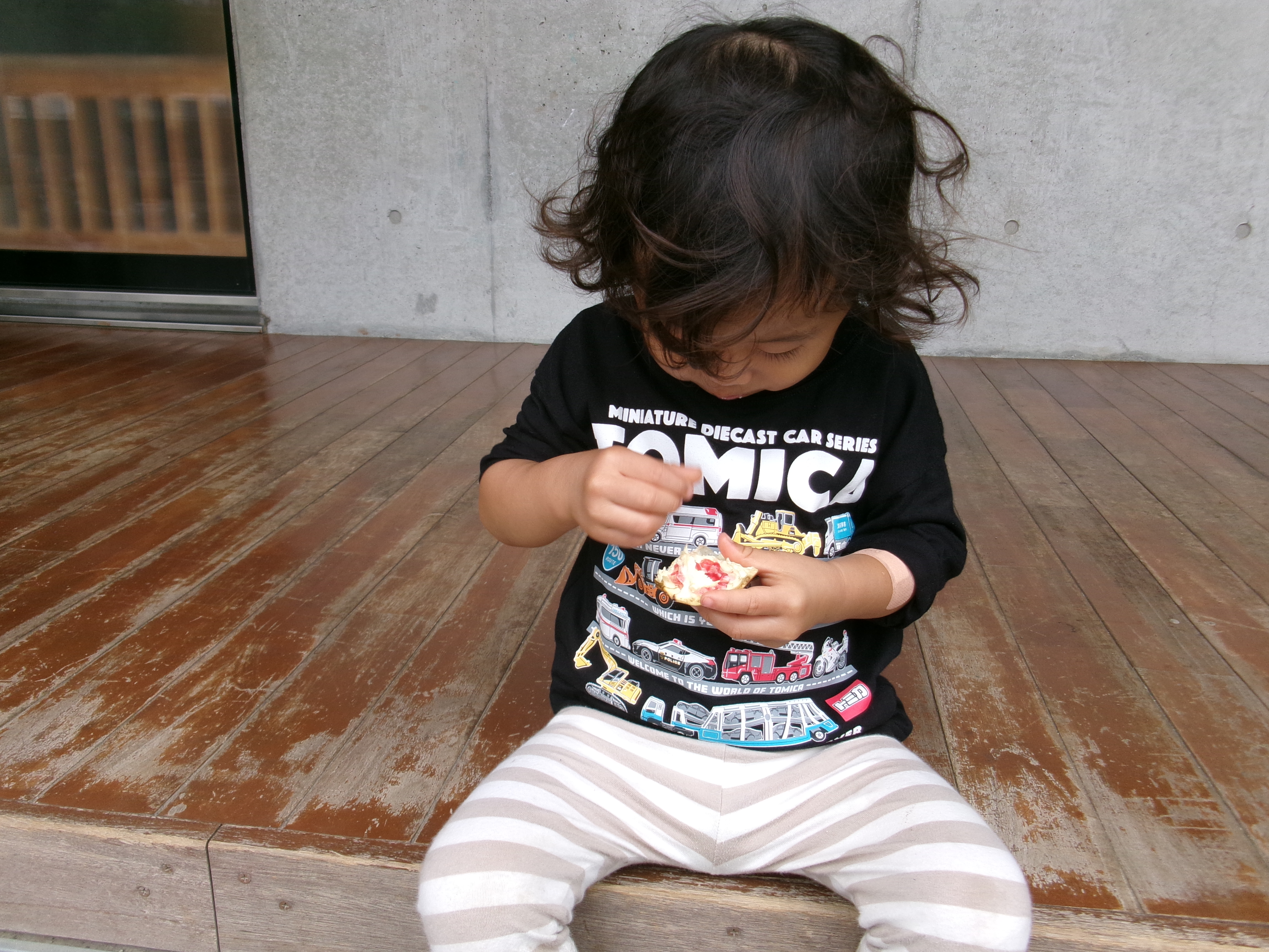 ぴよぴよ組の子が一生懸命食べているのはザクロ!