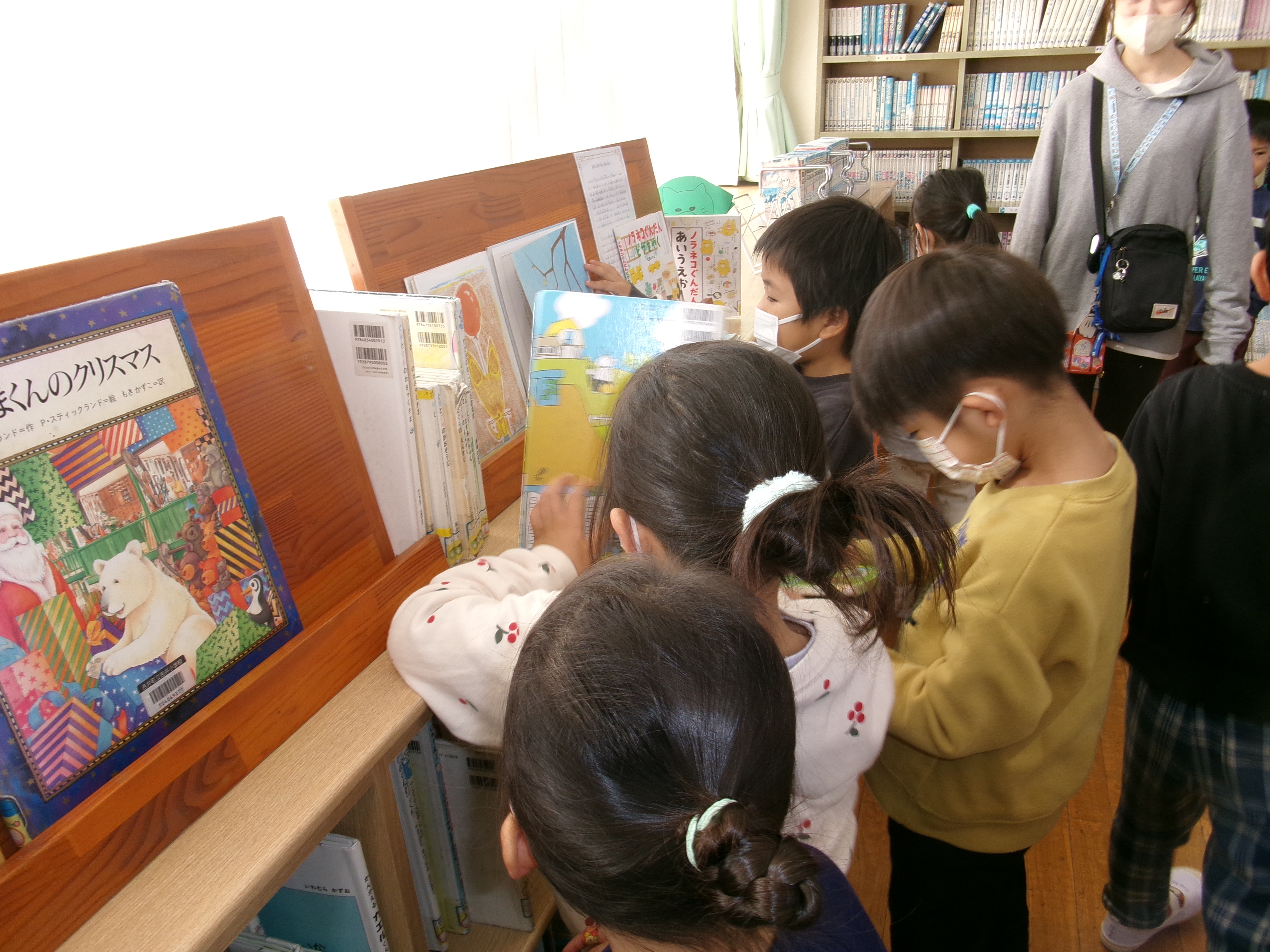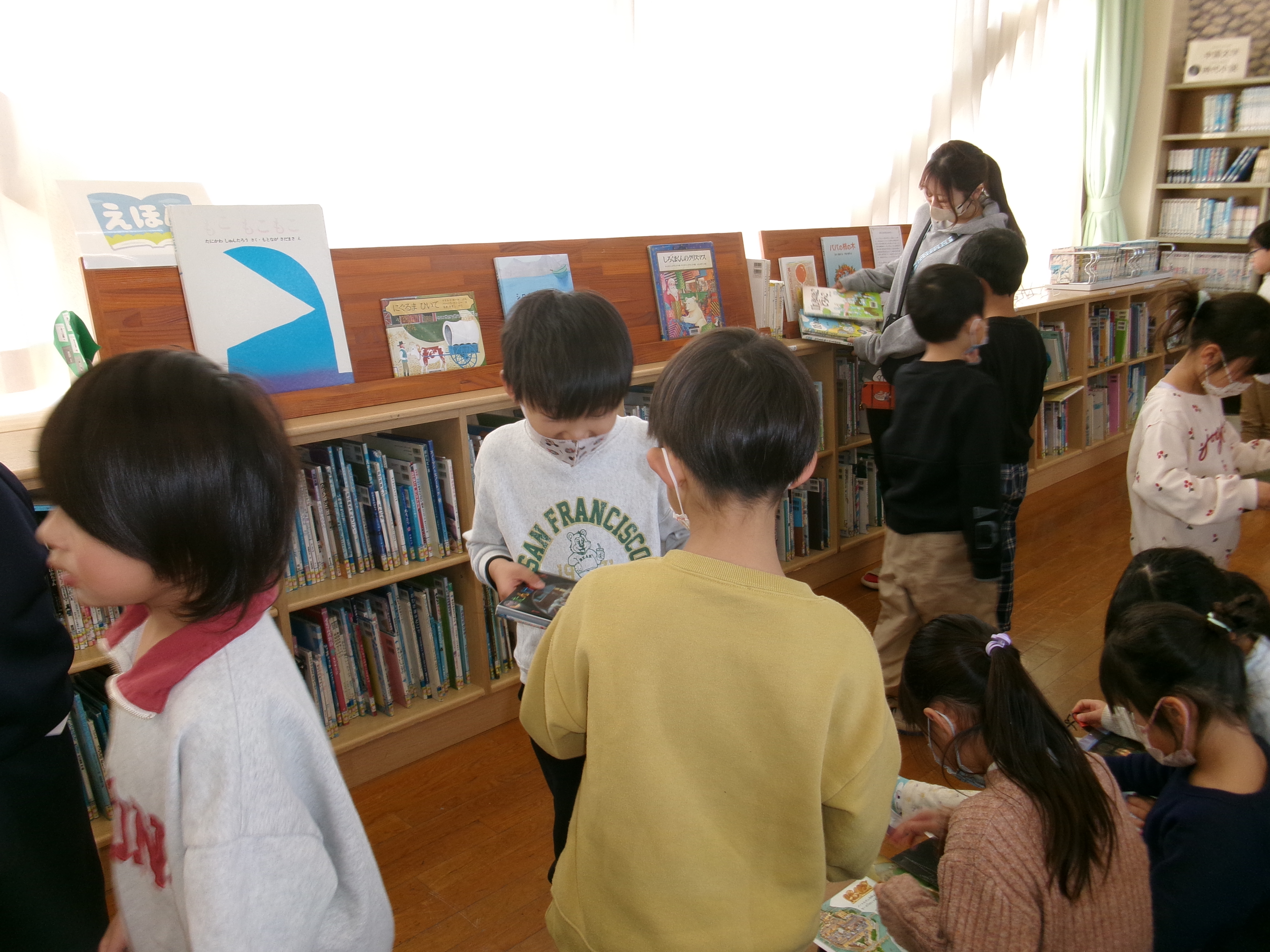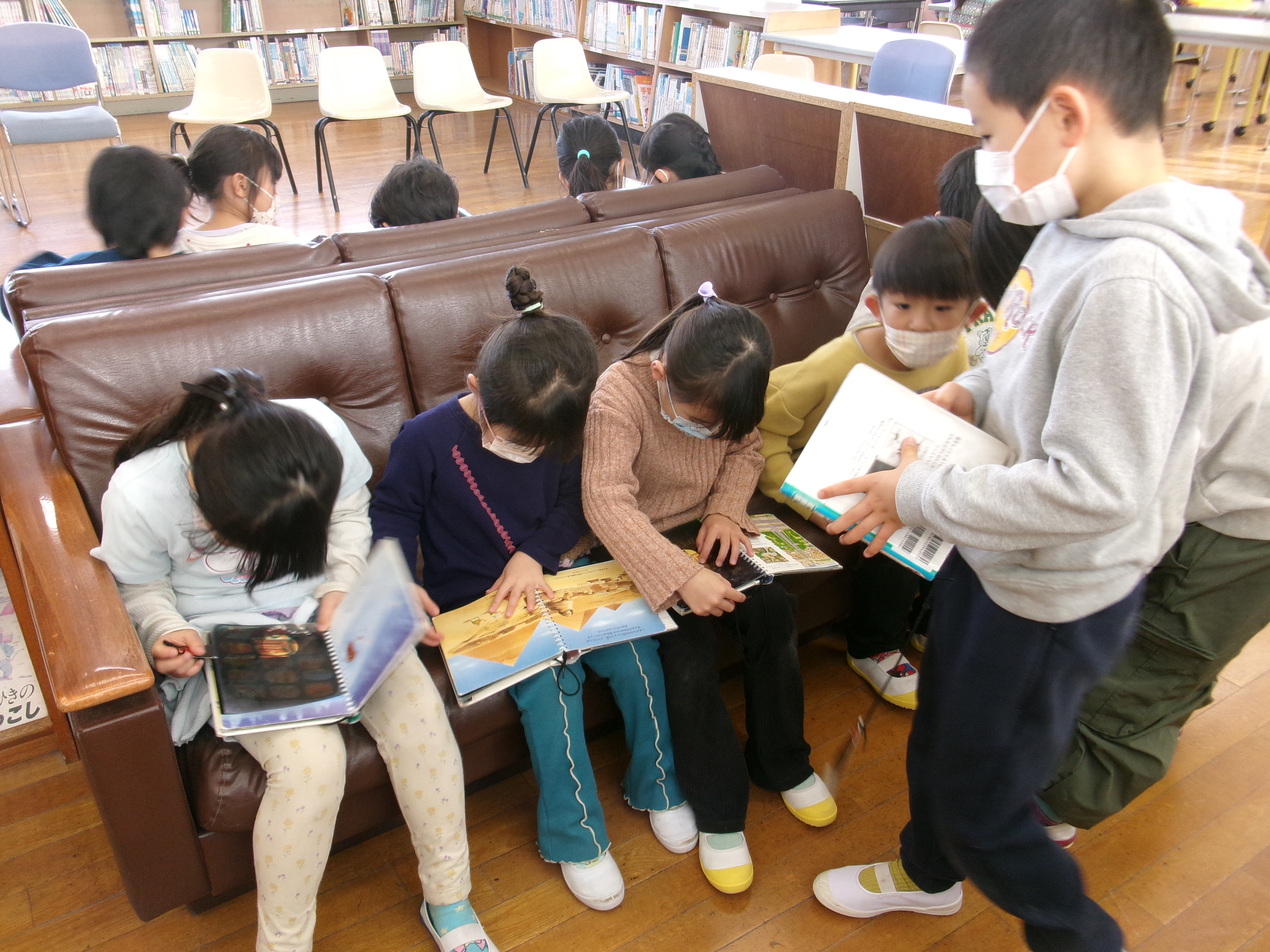 漢字の練習が終わると、1年生と図書館に行きました。