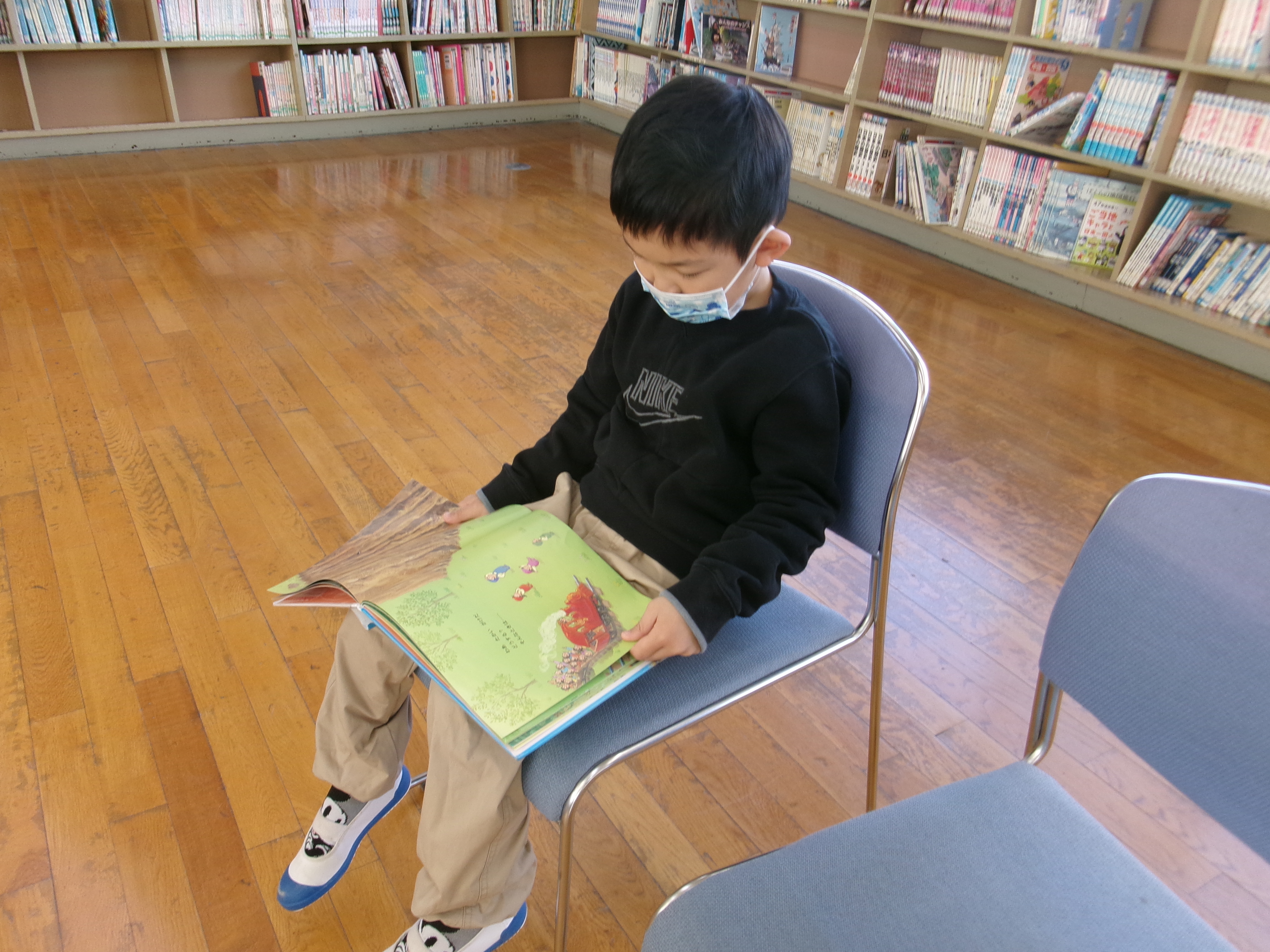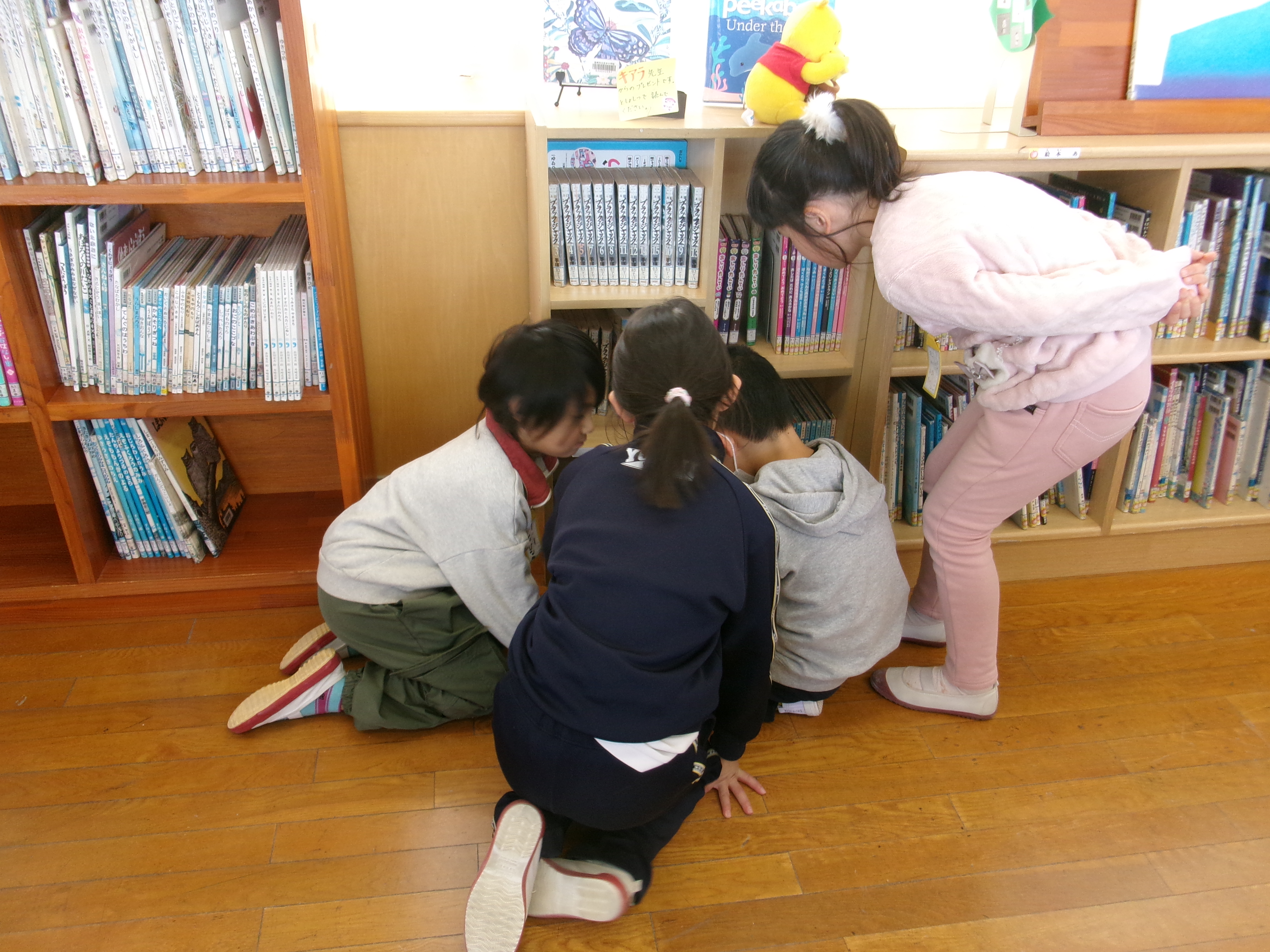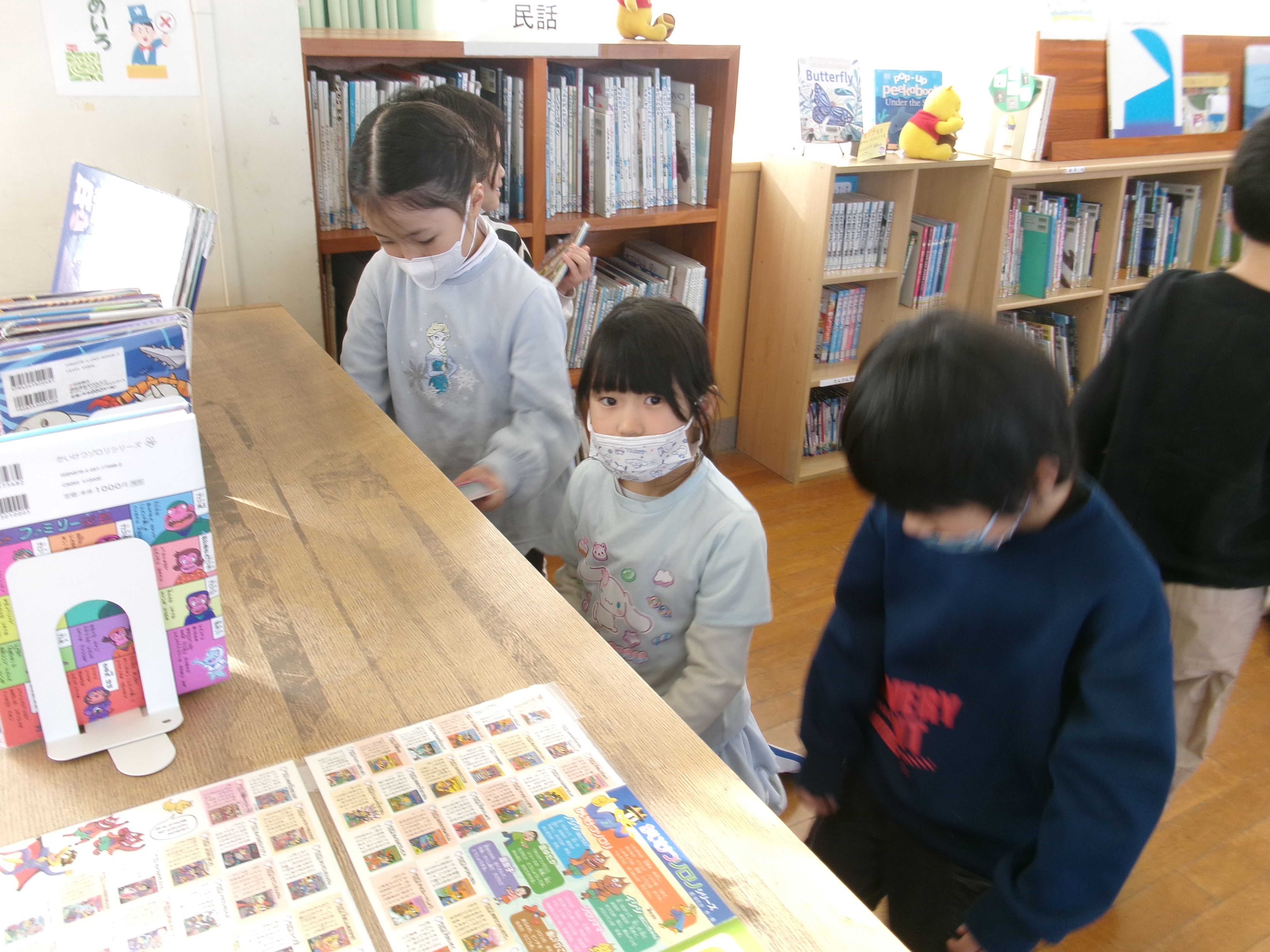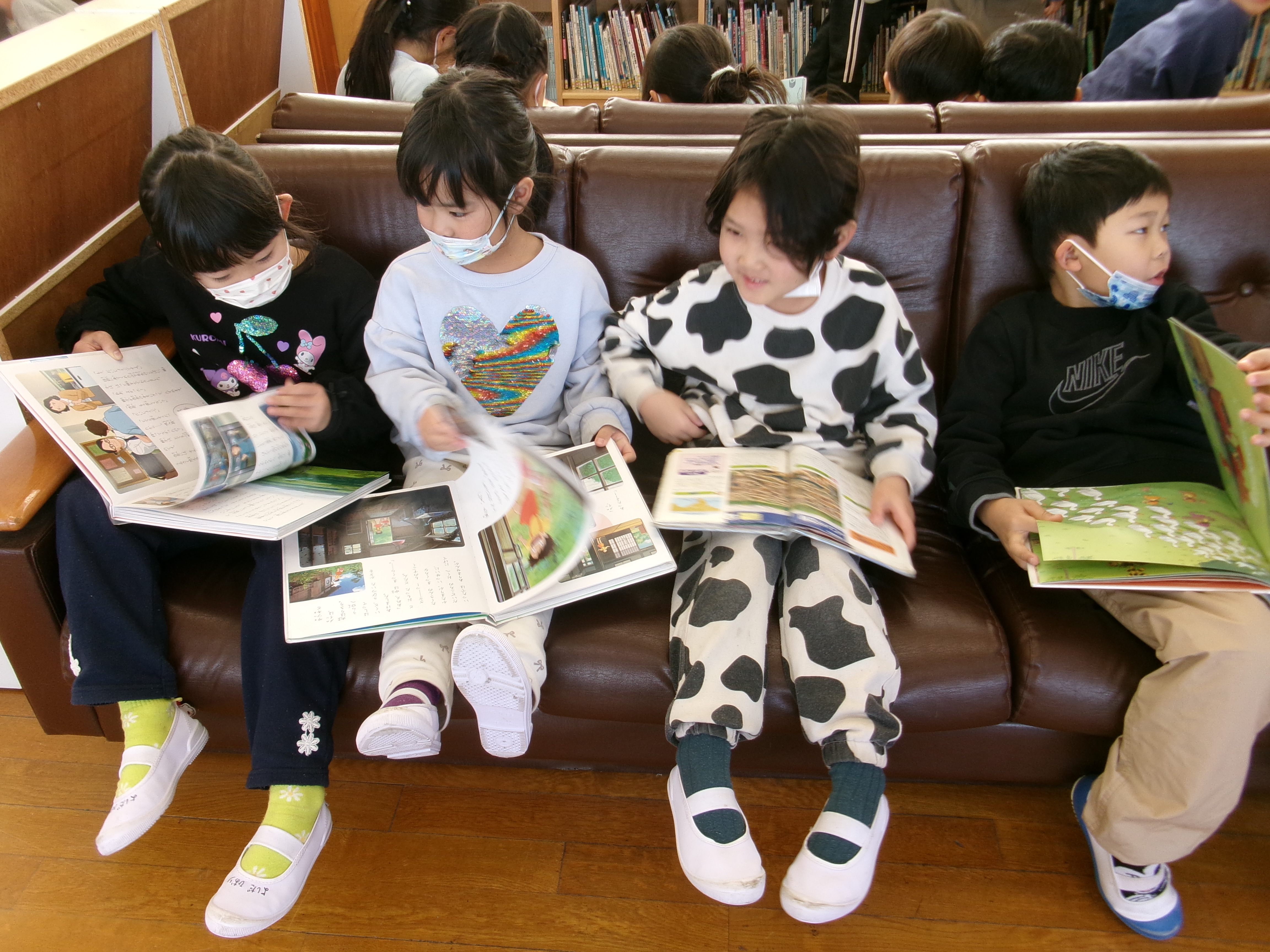 漢字の練習が終わると、1年生と図書館に行きました。