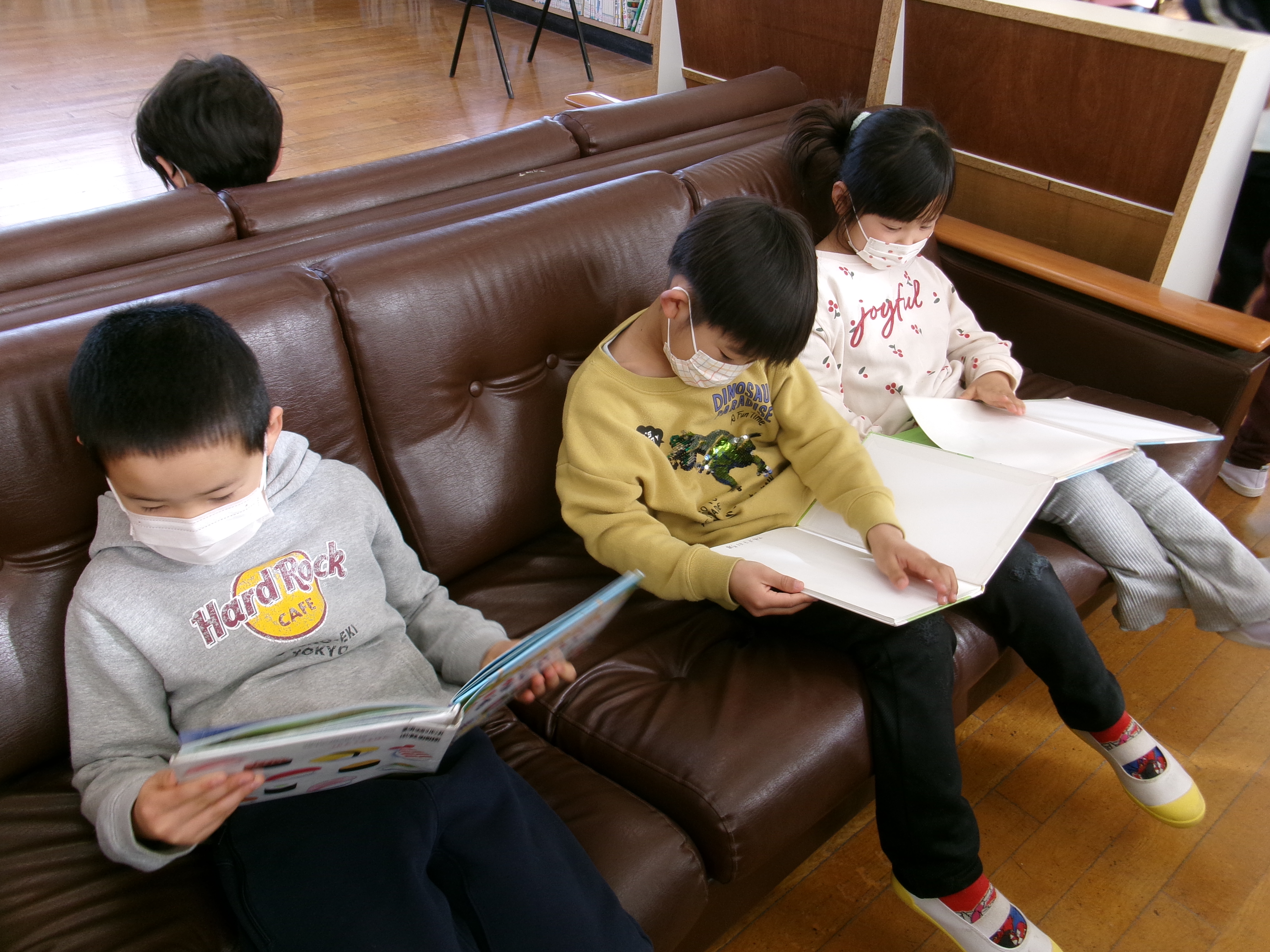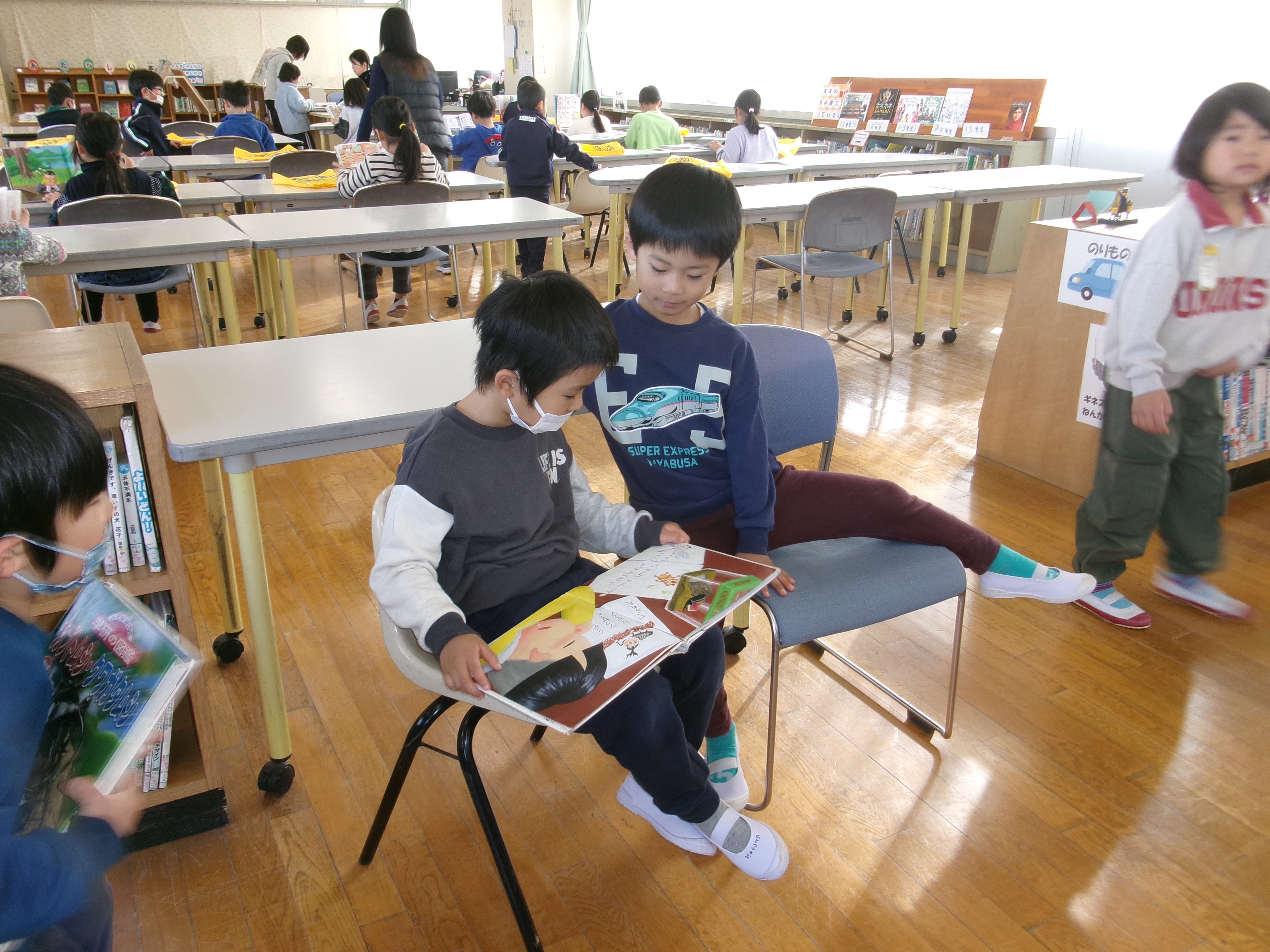 行く時に1年生が「廊下はね、右側通行なんだよ」と教えてくれる姿がありました。