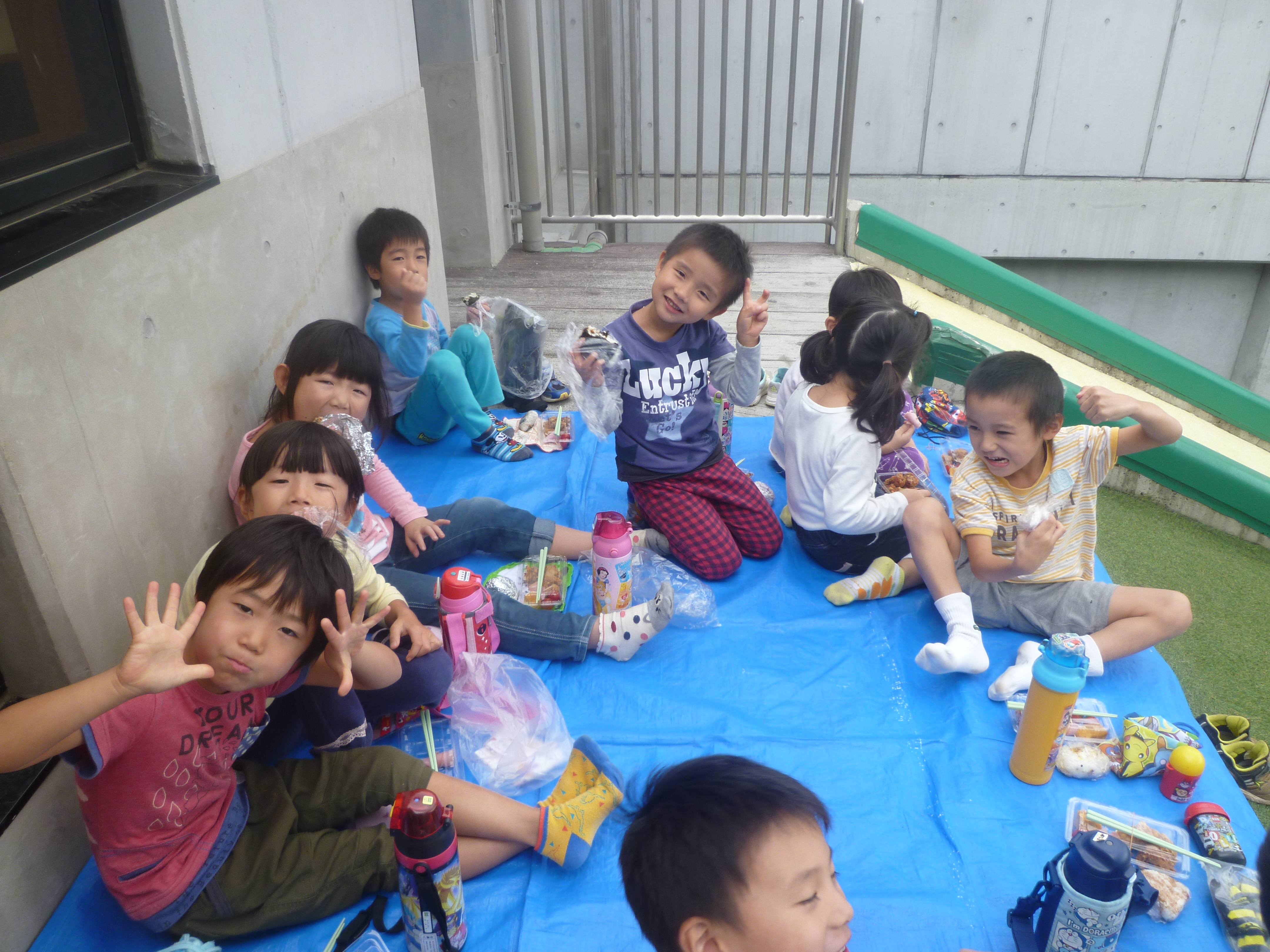 でも、子ども達が給食の前になり、「外で食べたいなぁ~」「稲刈りはできなかったけど、外で食べたら稲刈りの雰囲気で楽しいんじゃない?」と提案してくれ、外で食べることになりました。