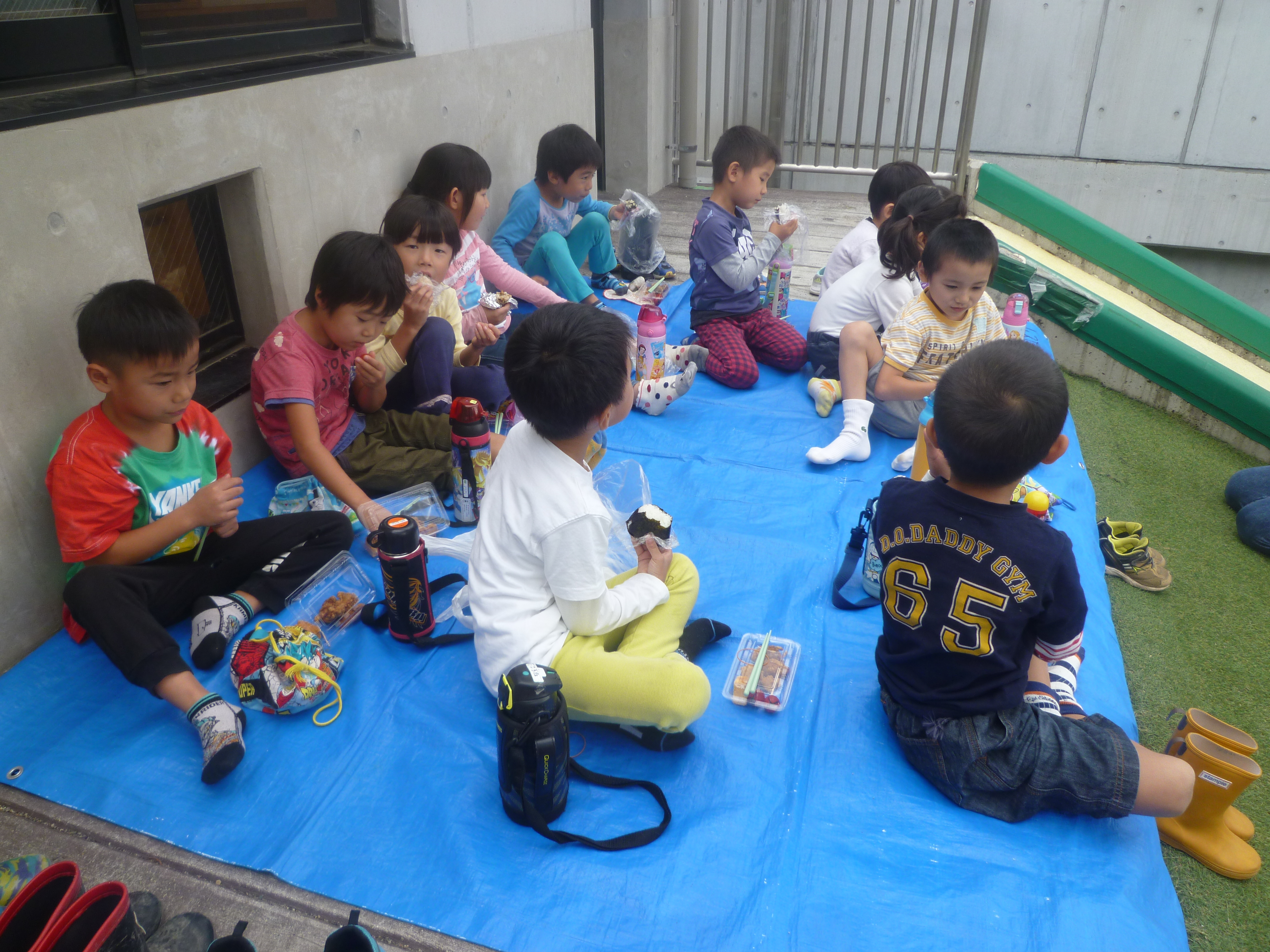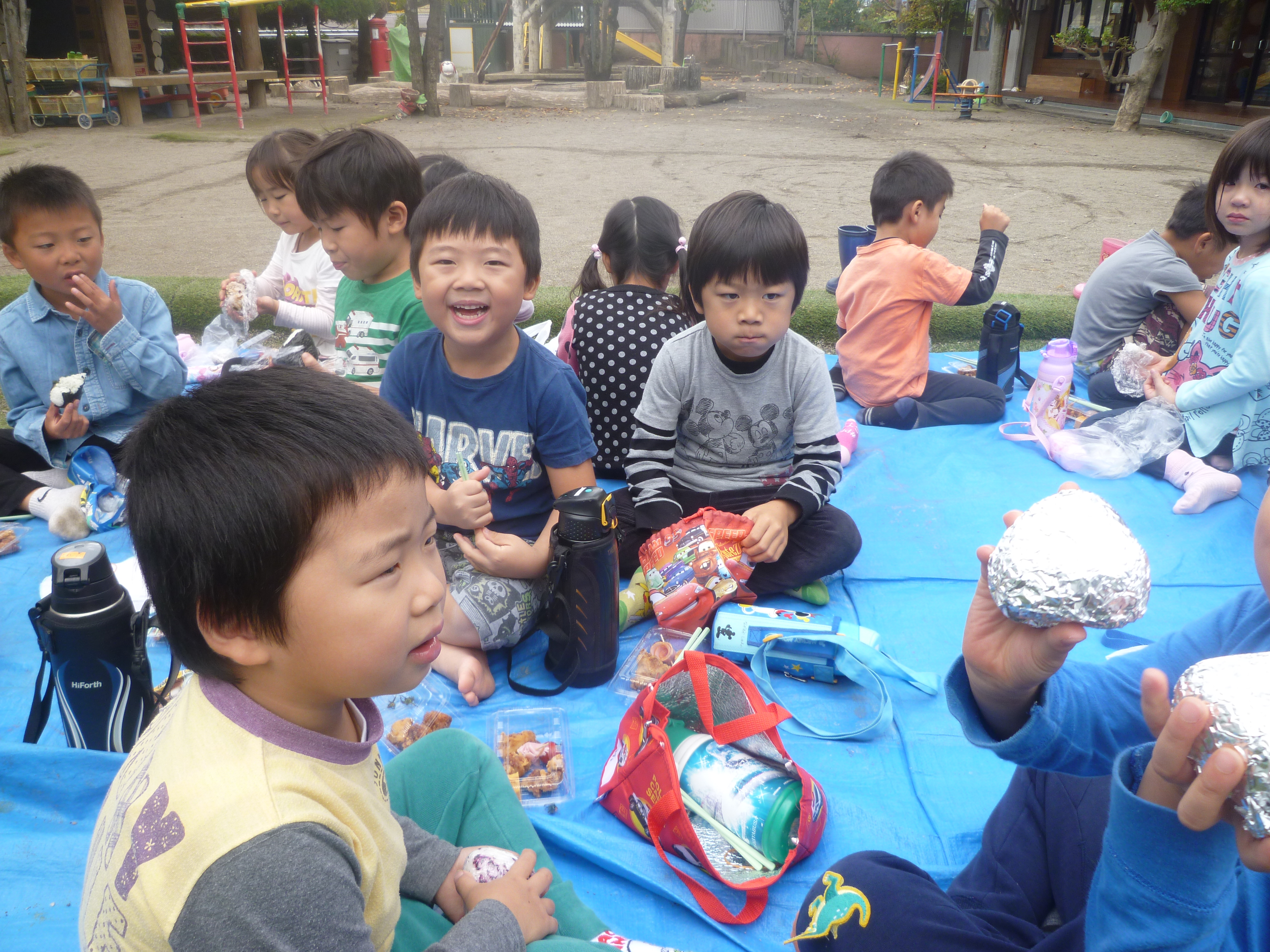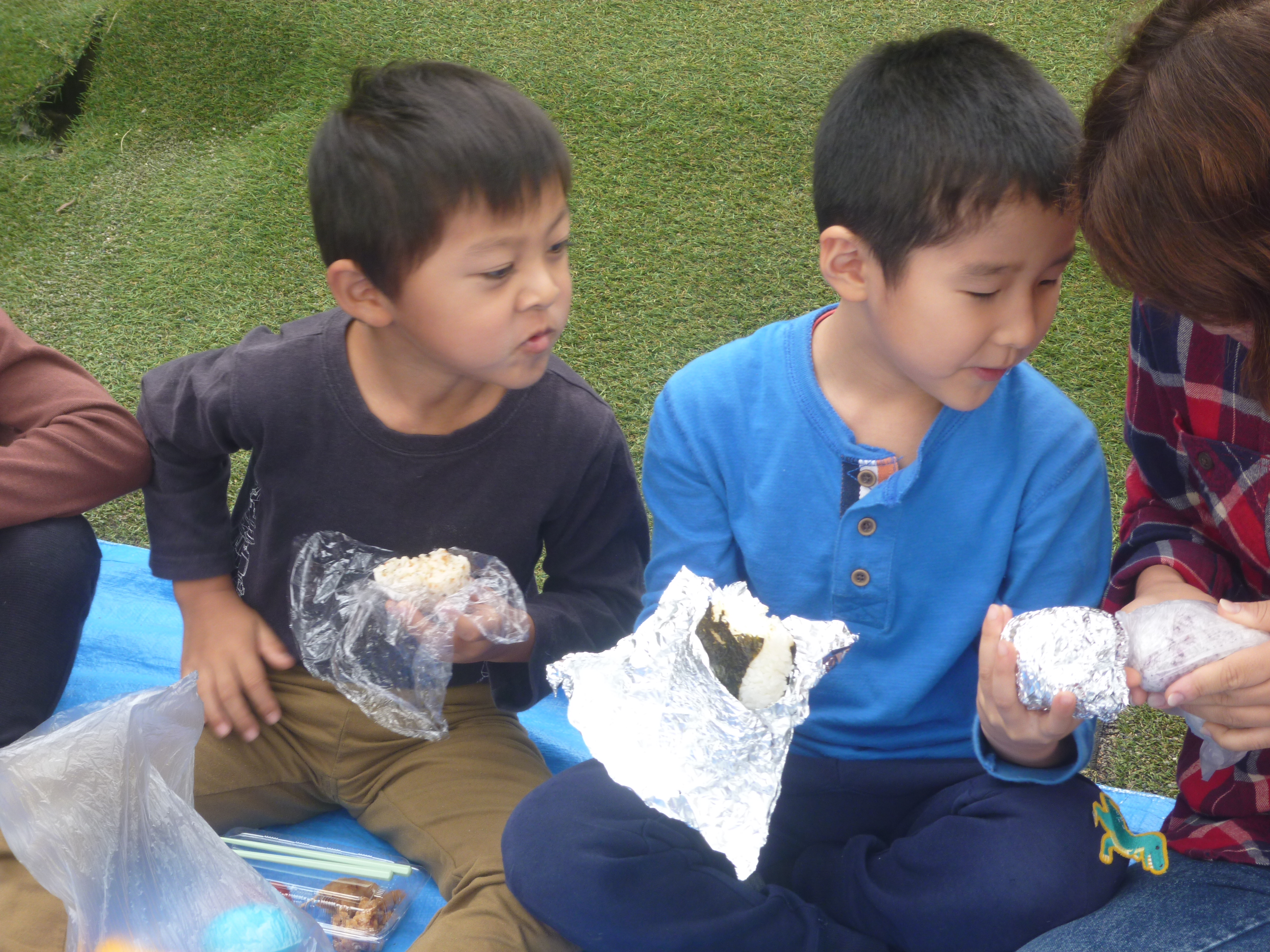 みんなのおにぎりはとても大きく、保育者と自分のおにぎりを比べる子もいました。